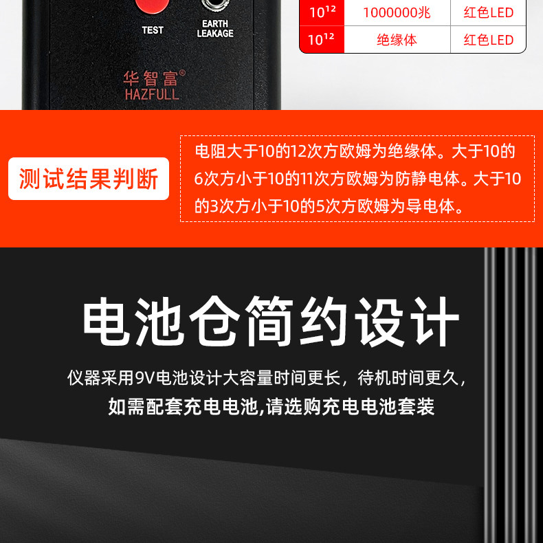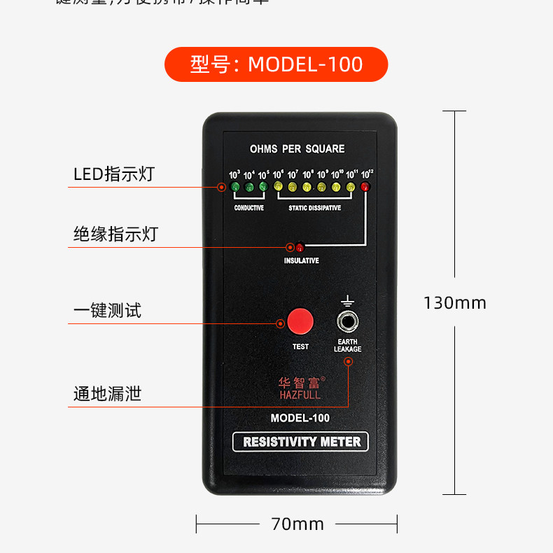 Huazhifu Anti-Static Tester Model-100 Surface Resistance Tester Foam Static Resistance Detection