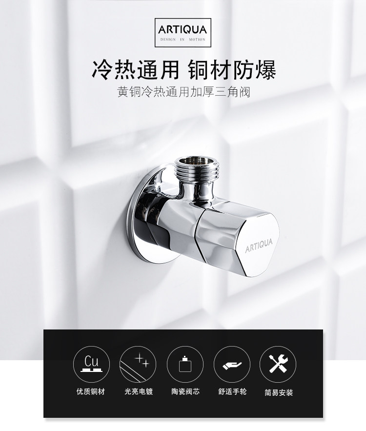 Artiqua All-Copper Angle Valve Thickeneded Triangle Valve Hot and Cold Faucet Universal Toilet Water Heater Inlet and Stop Valve