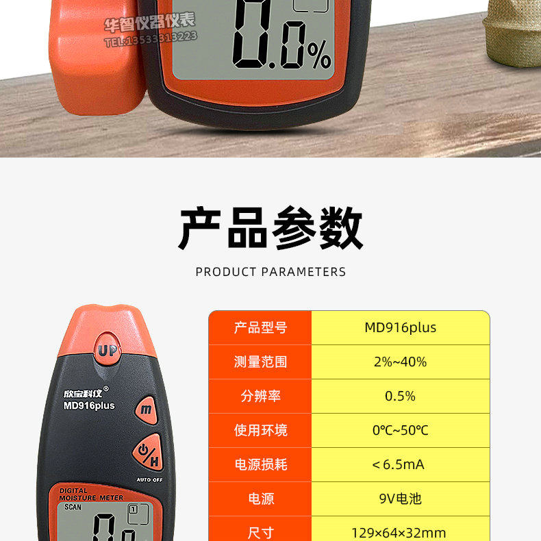 Xinbao Digital Paper Moisture Tester Md916/Md-916Plus Cardboard Shrapnel Contact Moisture Meter