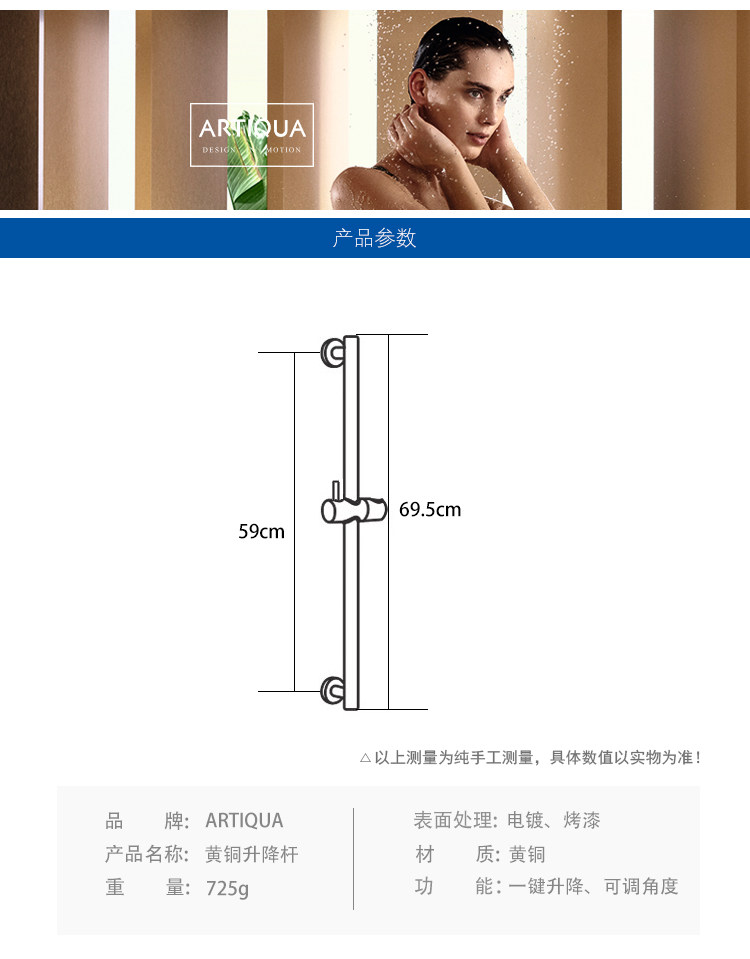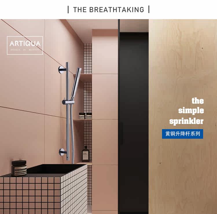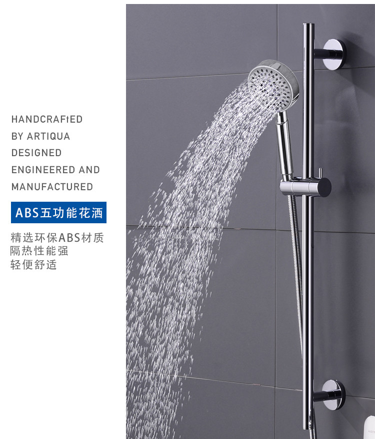 Artiqua All-Copper Adjustable Shower Rod with Movable Adjustable Bracket, Shower Head Holder, 5-Function Shower Set