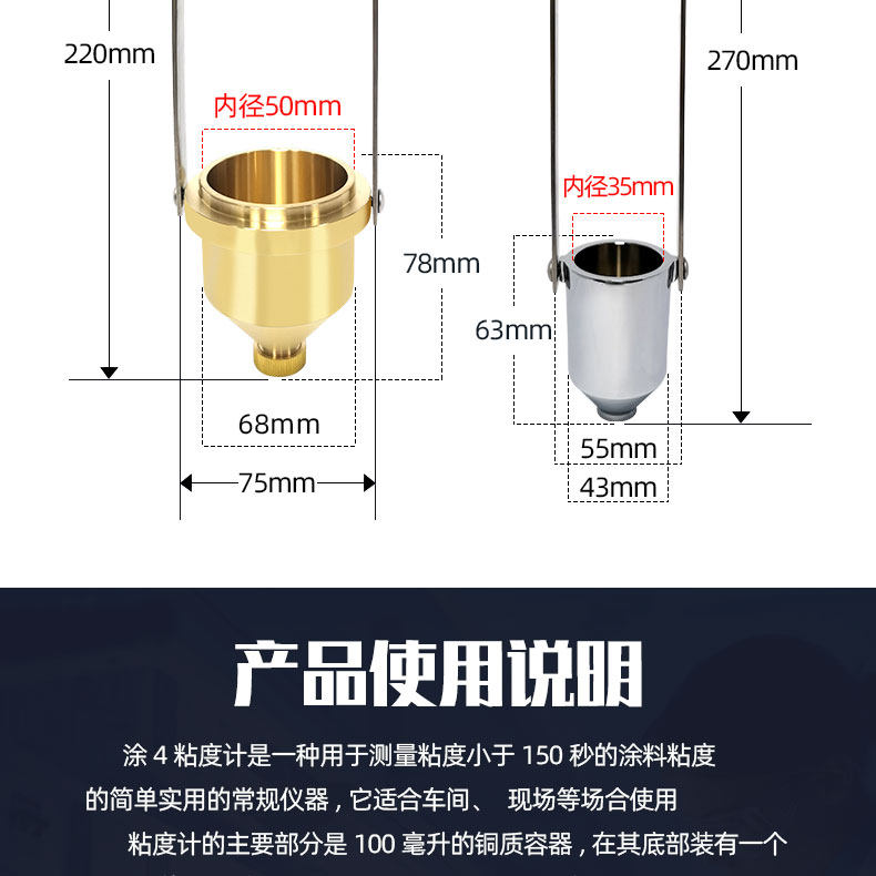 Paint Viscosity Cup Portable Set of 4 Cups, Cup No. 2, Cup No. 4, Paint Liquid Viscosity Tester Flow Meter