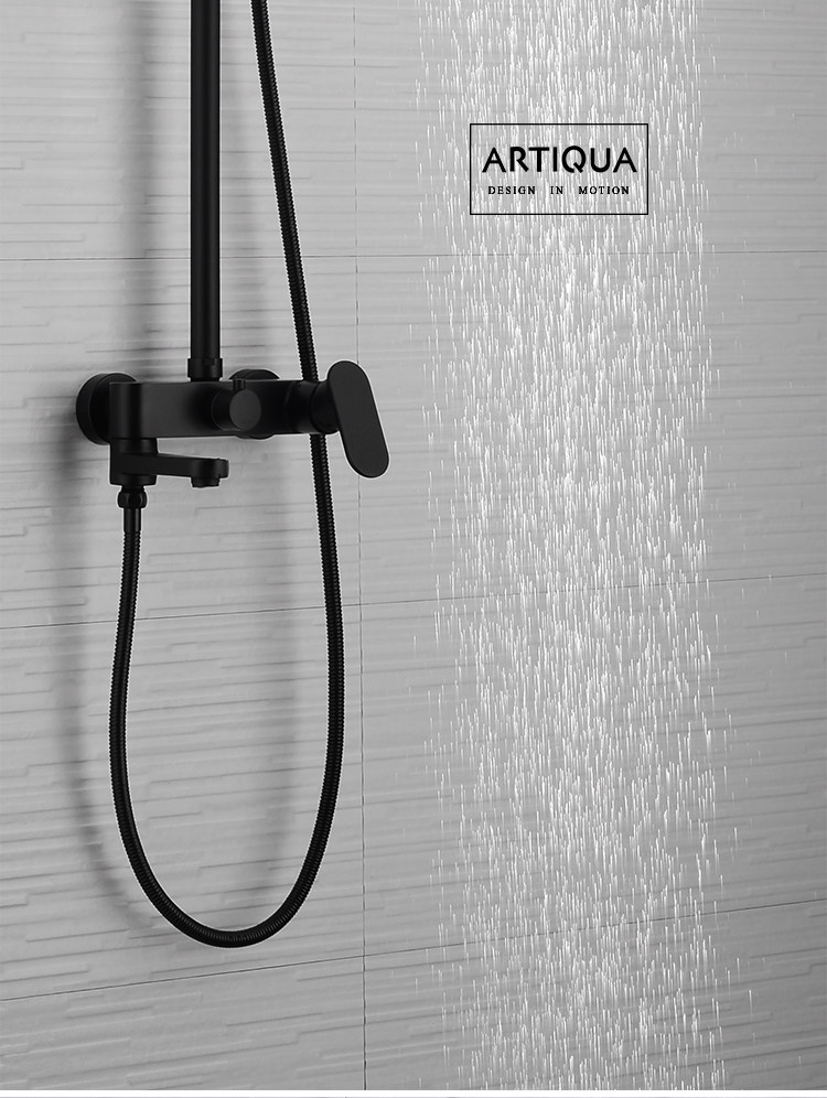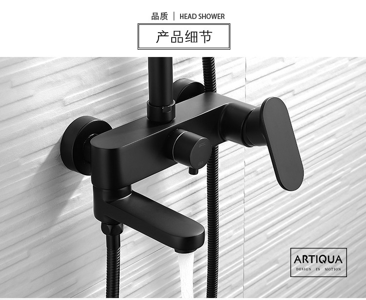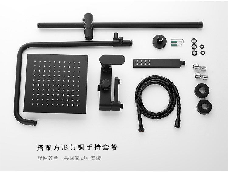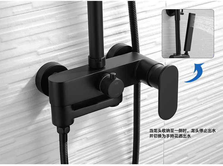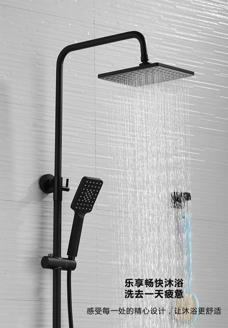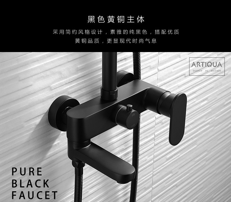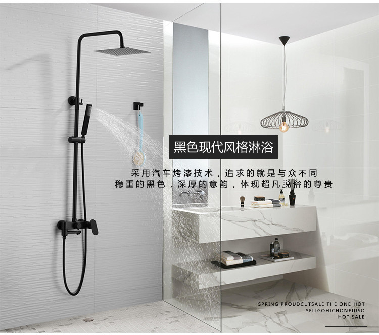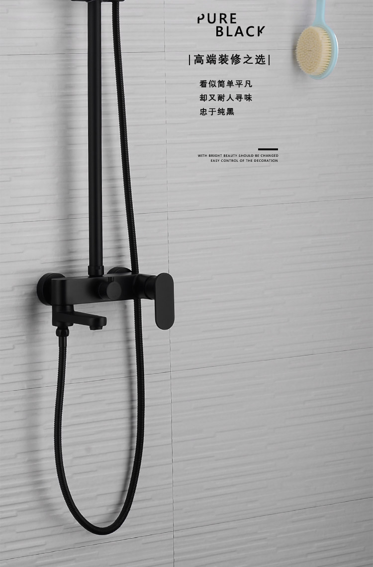 Shower Set All-Copper Shower Faucet Hot and Cold Mixing Valve Household Shower Head Bath Nozzle Nordic Black