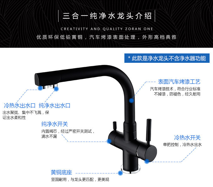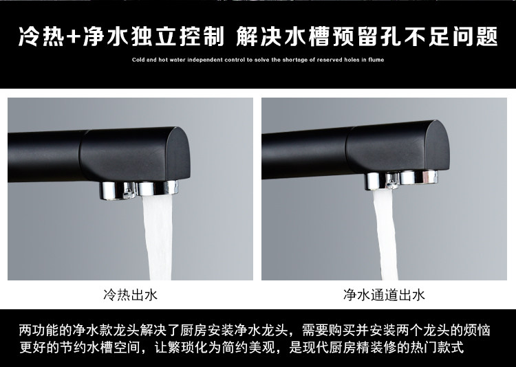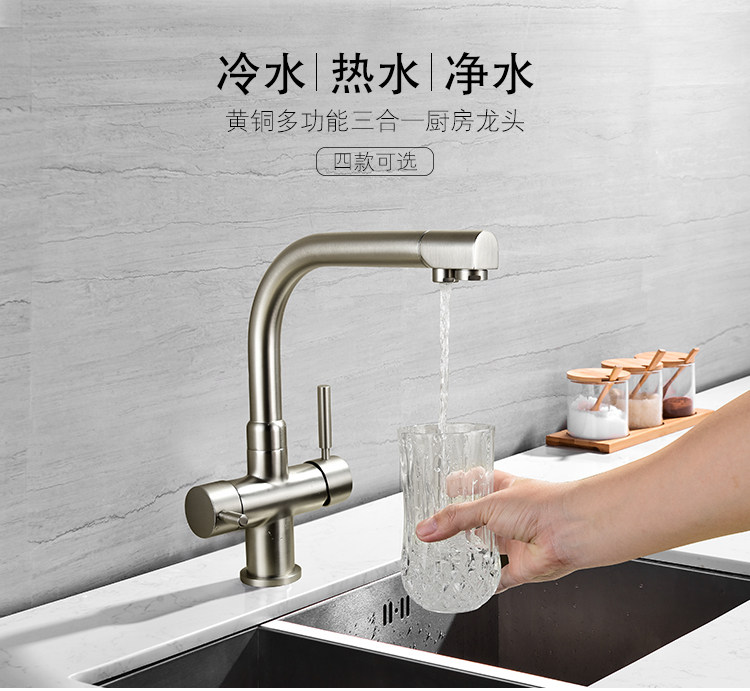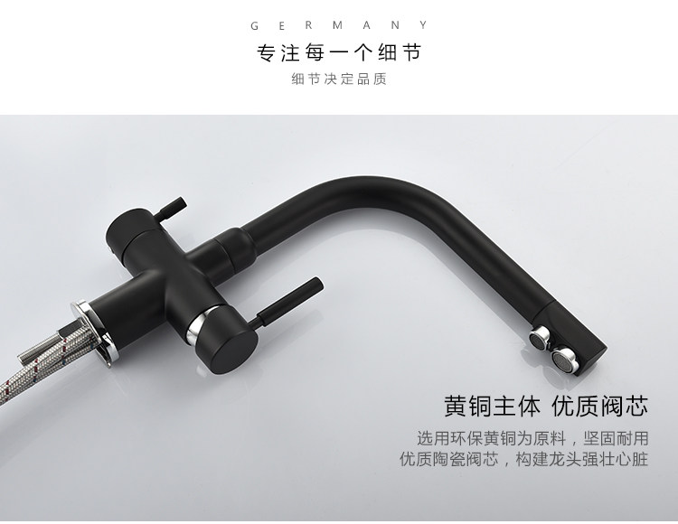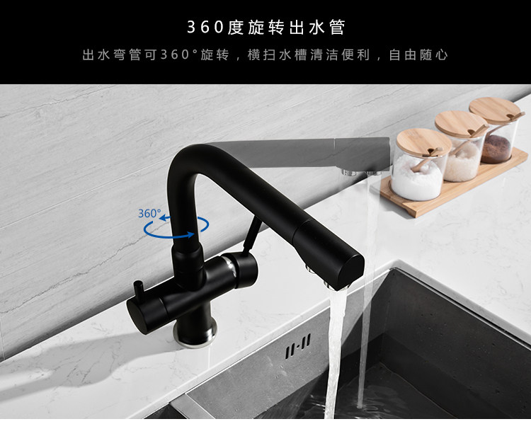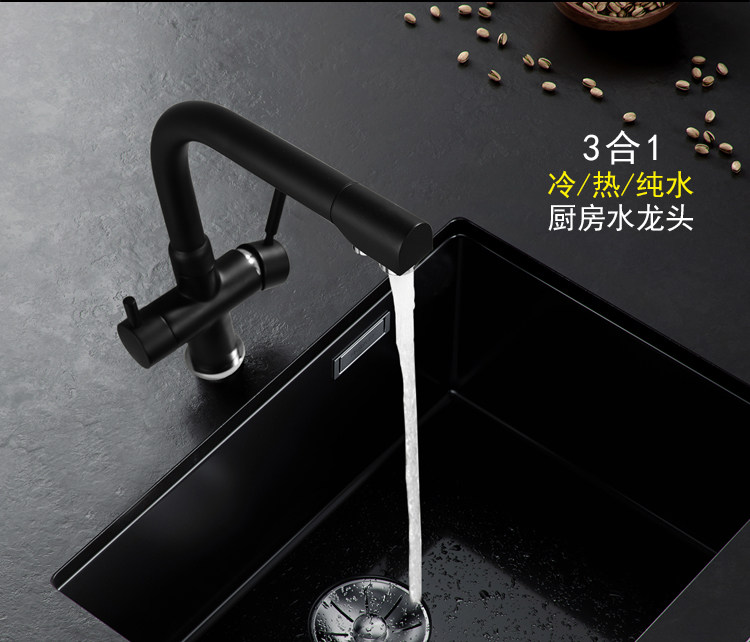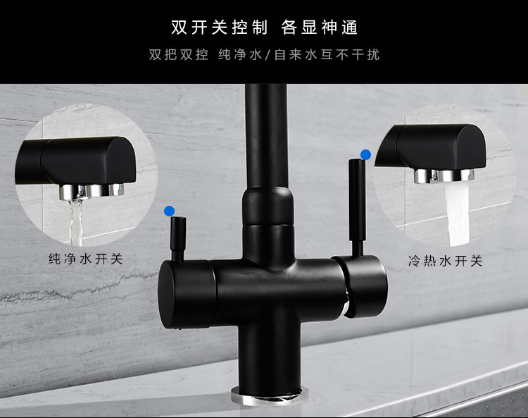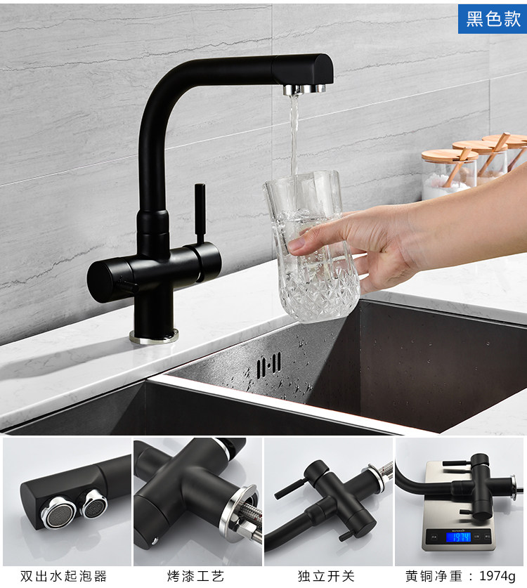 Lead-Free All-Copper Pure Faucet Hot and Cold Kitchen Sink Faucet Black Three-In-One Direct Drinking Faucet