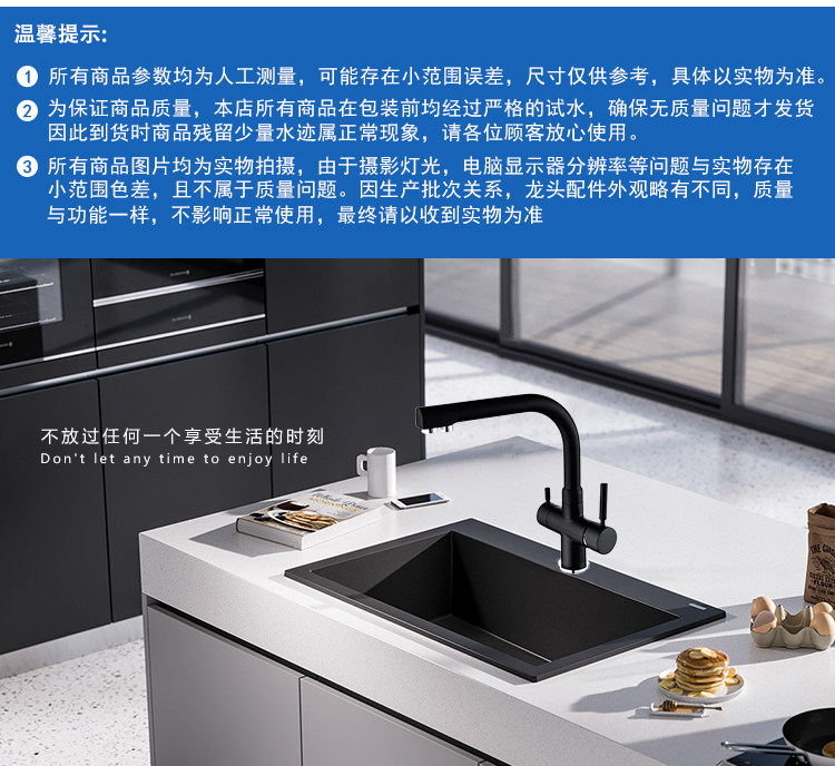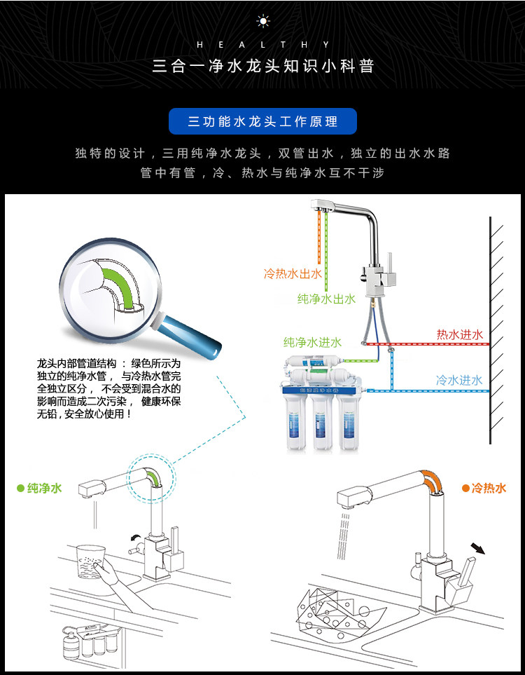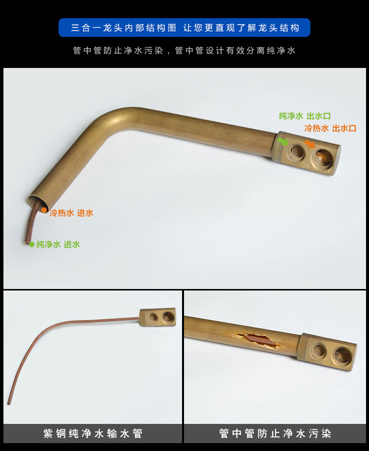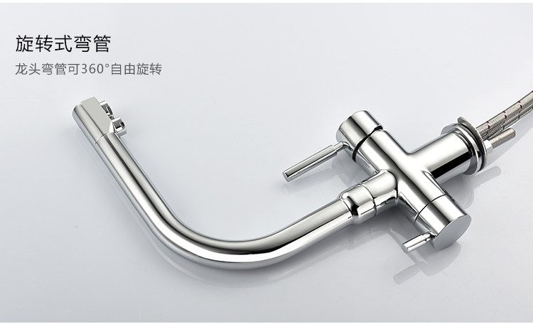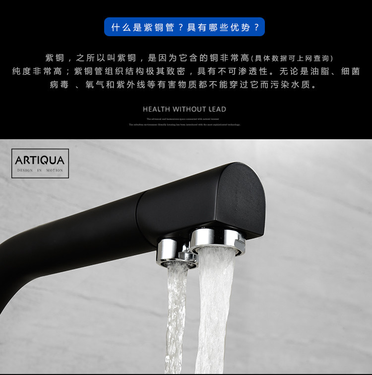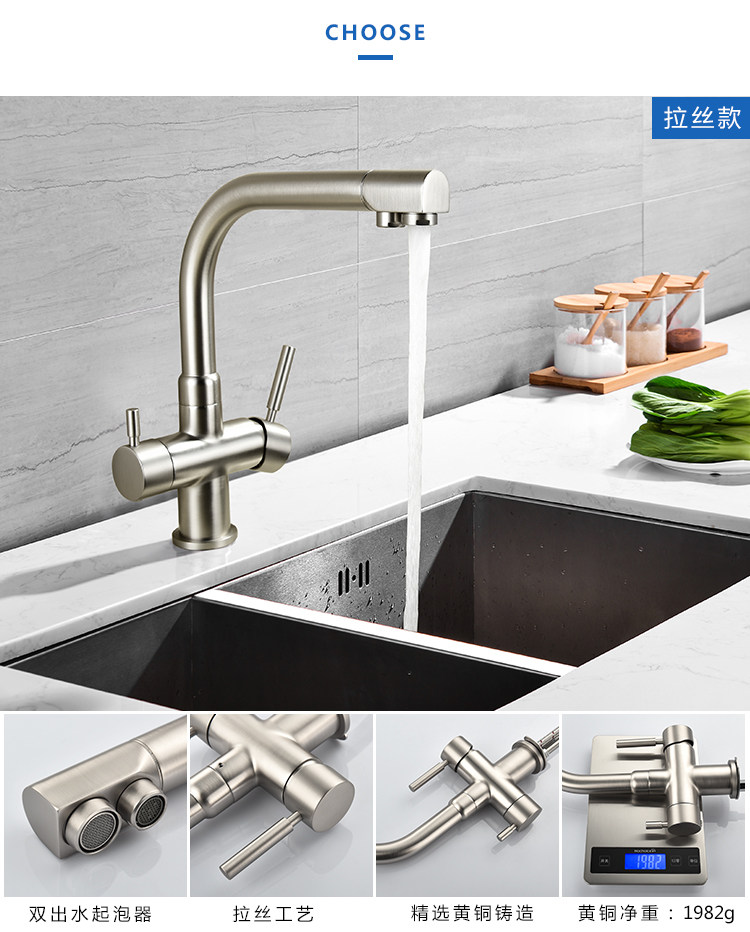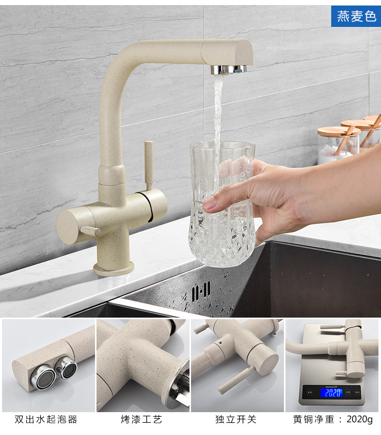 Lead-Free All-Copper Pure Faucet Hot and Cold Kitchen Sink Faucet Black Three-In-One Direct Drinking Faucet