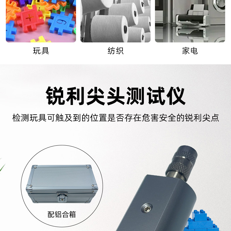 Color Classification Toy Gap Test Round Rod (with Paper Box),Toy Gap Test Round Rod (with Aluminum Case),Sharp Point Tester,Small Object Detector,Electric Sharp Edge Tester,Bite Force Detector,Finger Simulator,2 Ab Rattle Modules (with Aluminum Box),Rattle Module (Round),Rattle Module (Oval)