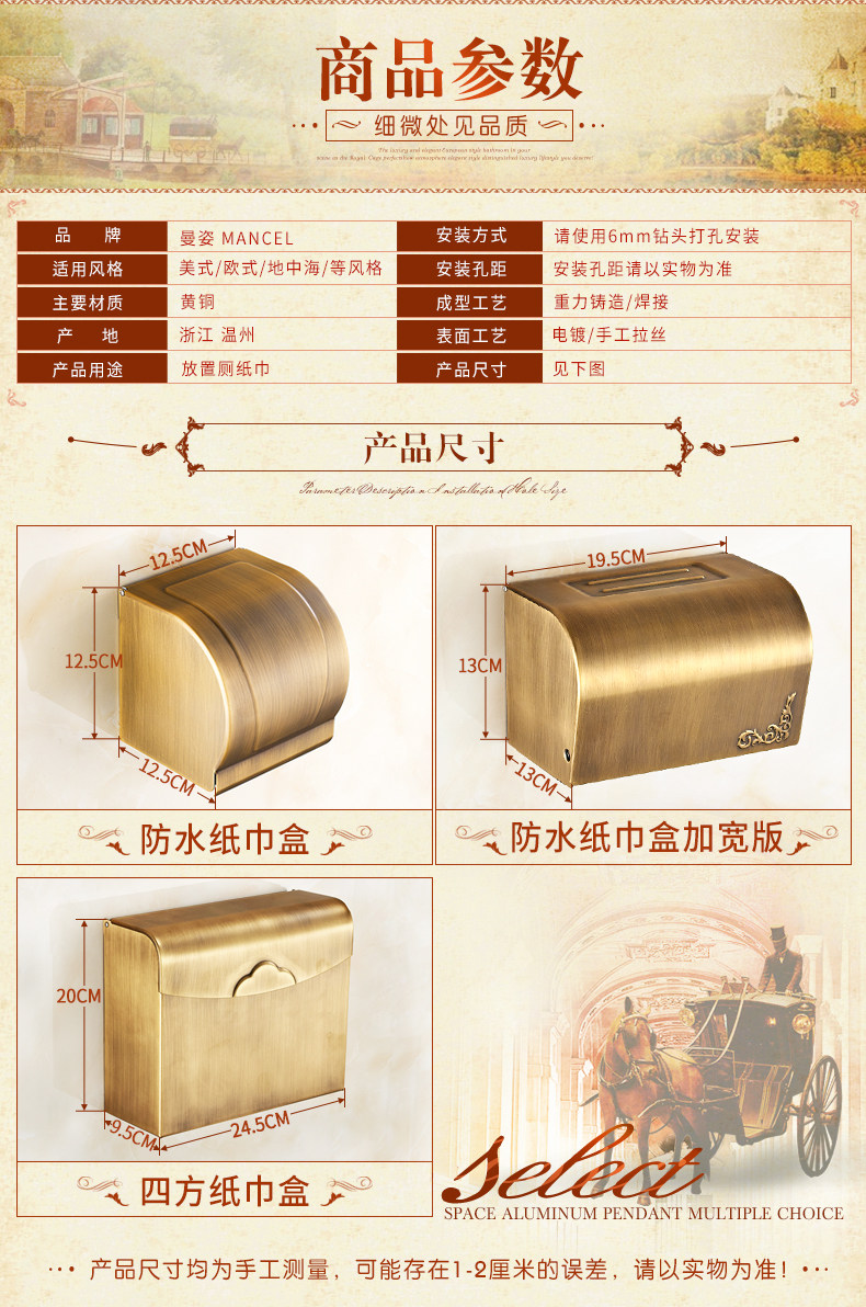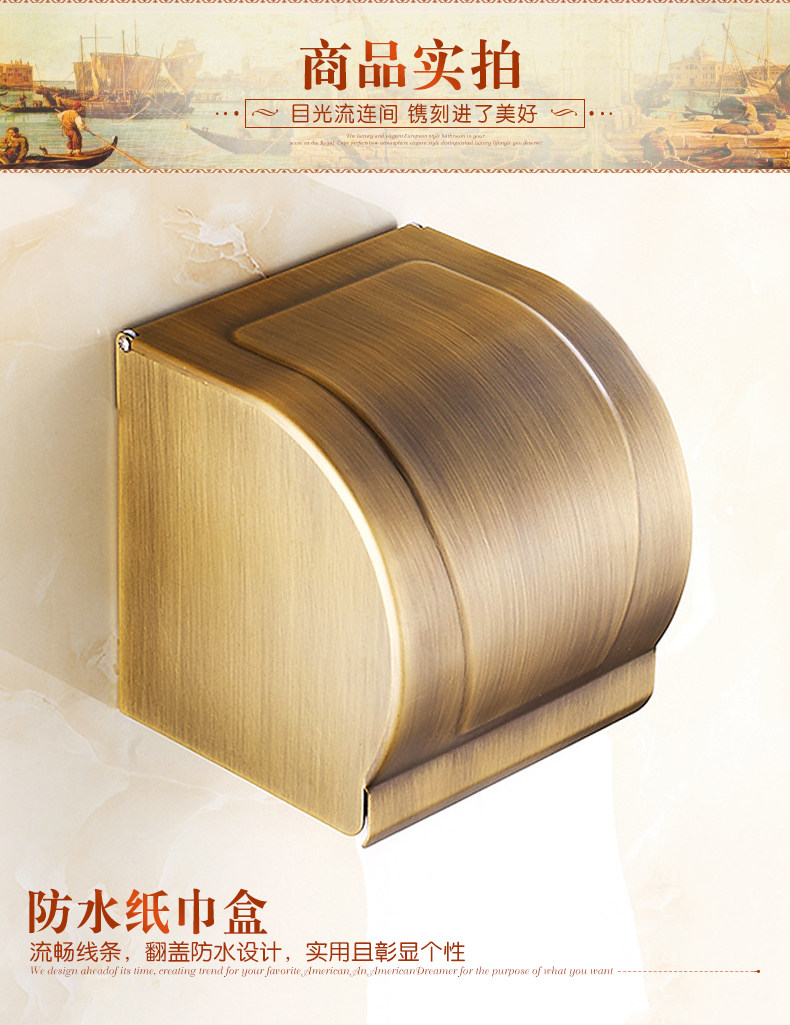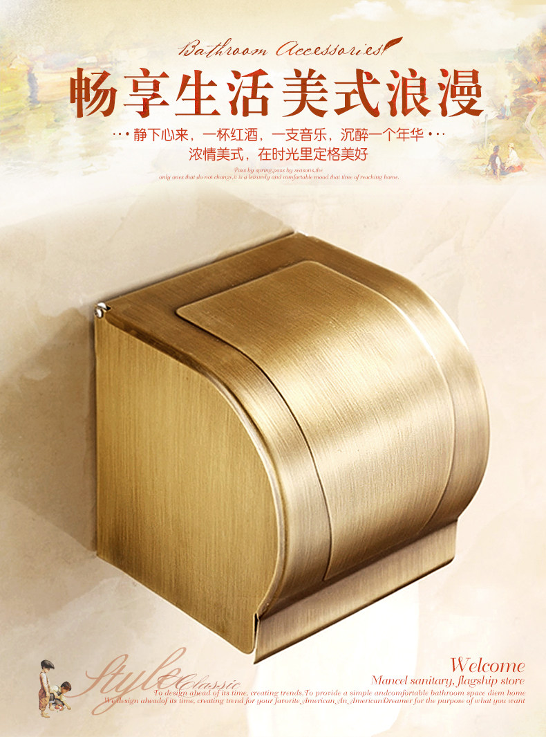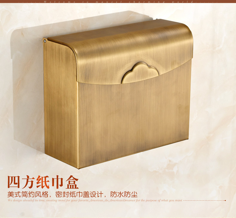 Antique bathroom tissue box, all-copper toilet paper box, punch-free toilet paper box, paper towel box, large roll paper box