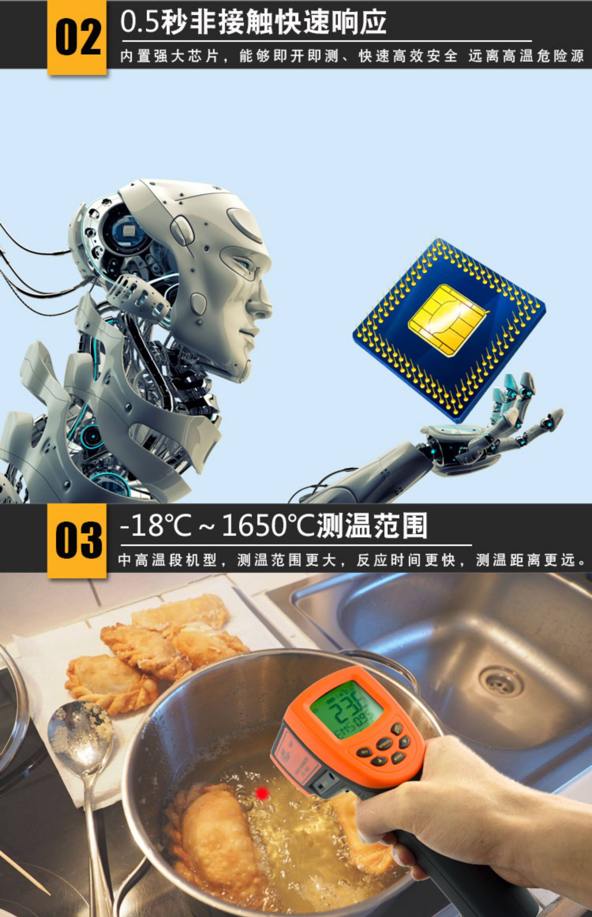 Xima Ar882+ High-Temperature Infrared Thermometer 1650 ℃ Industrial Grade Infrared Thermometer Digital Thermometer