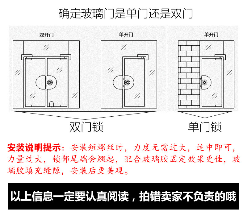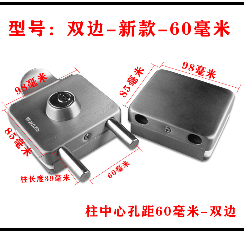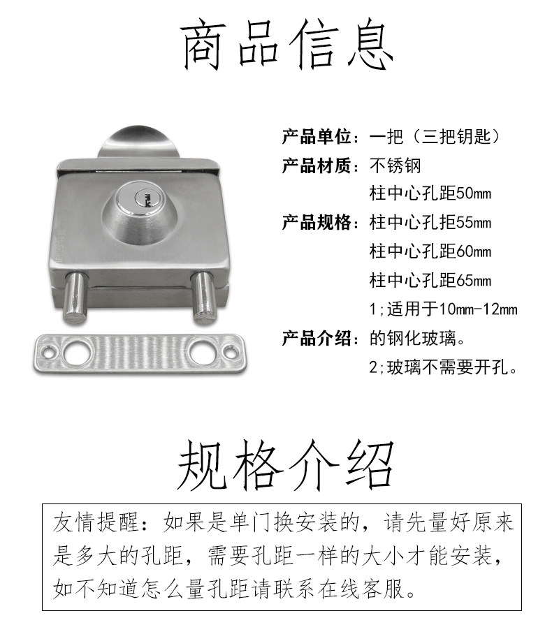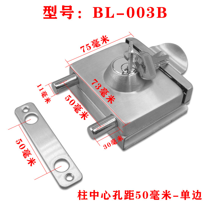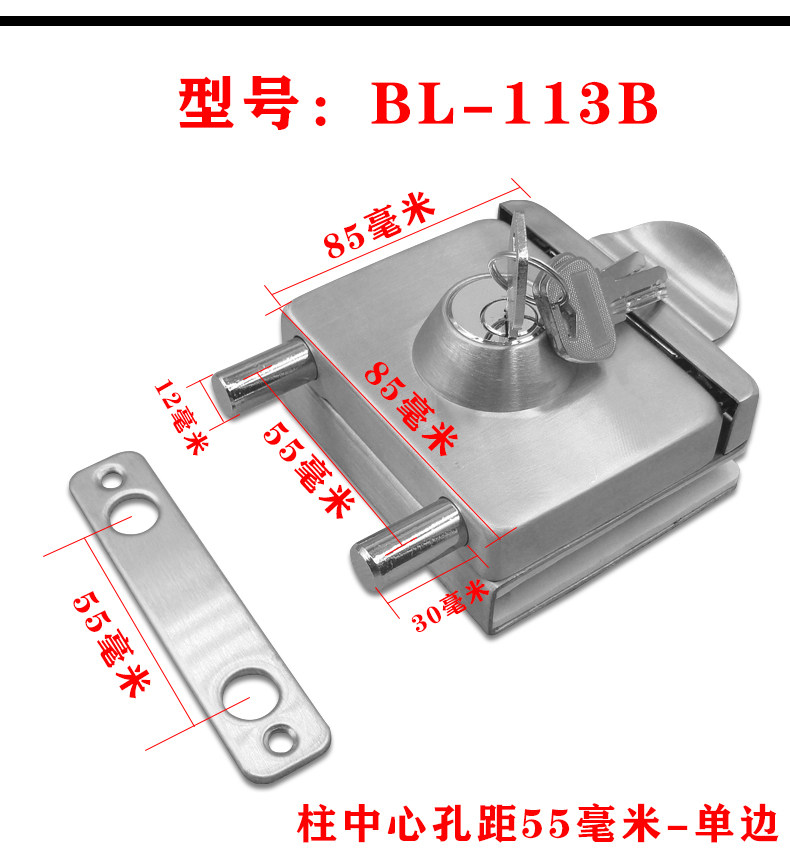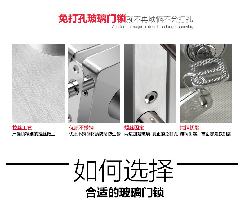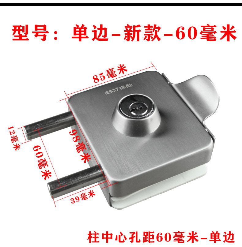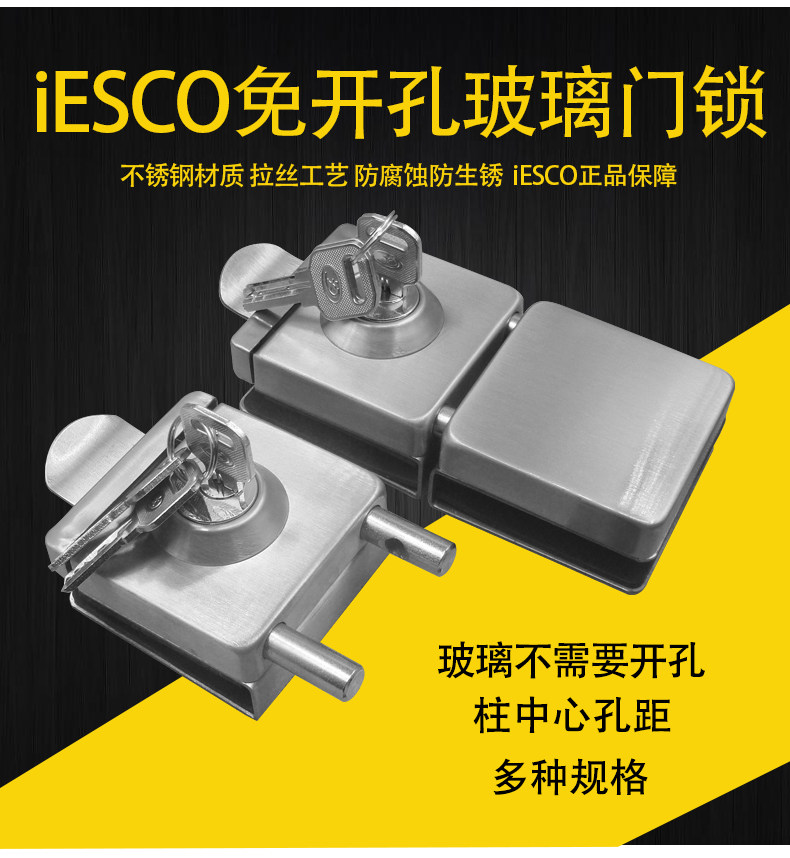 Stainless Steel Glass Door Lock, Mortise Lock, Column-Shaped Square Lock, No-Hole Central Door Lock, Door Opening Lock