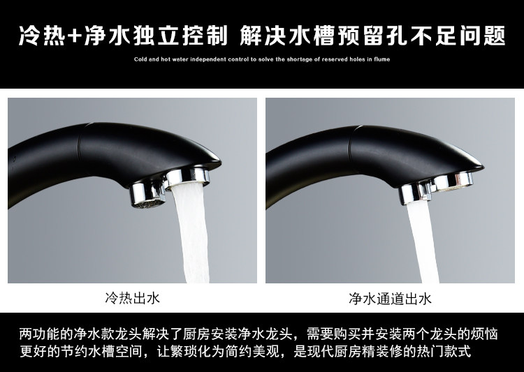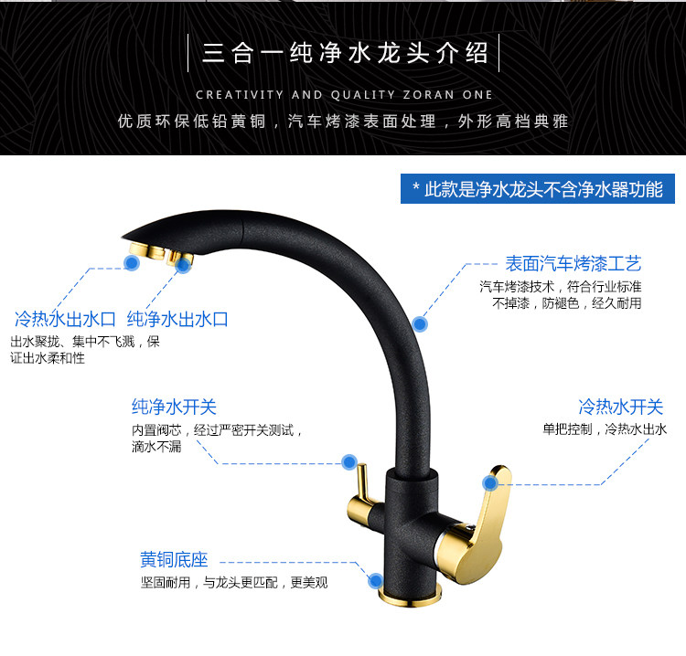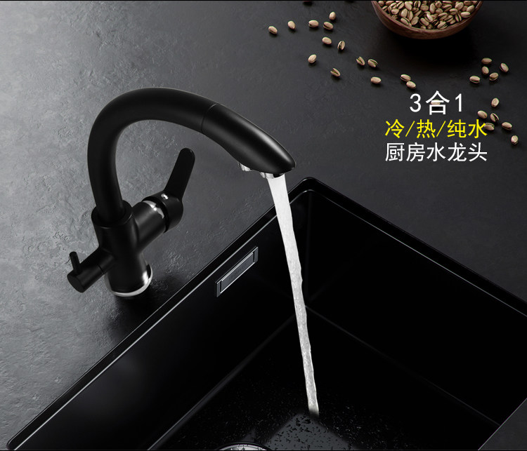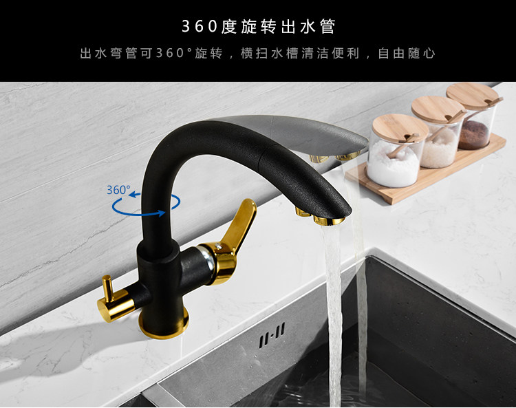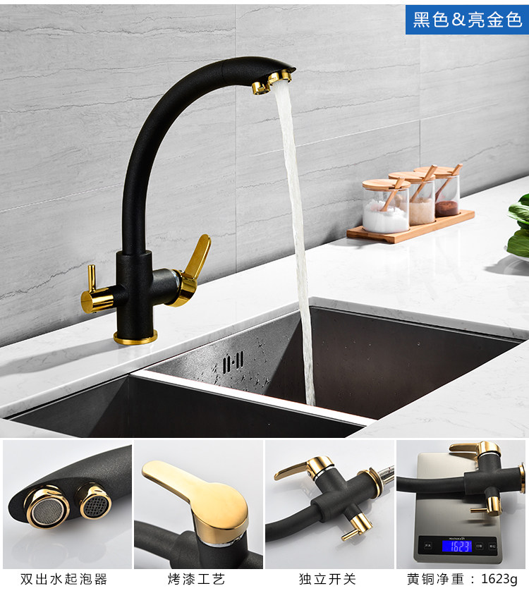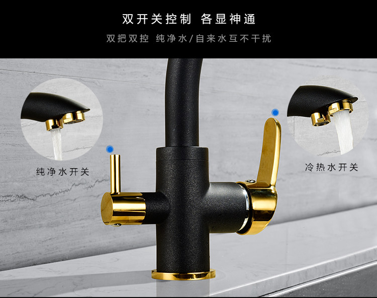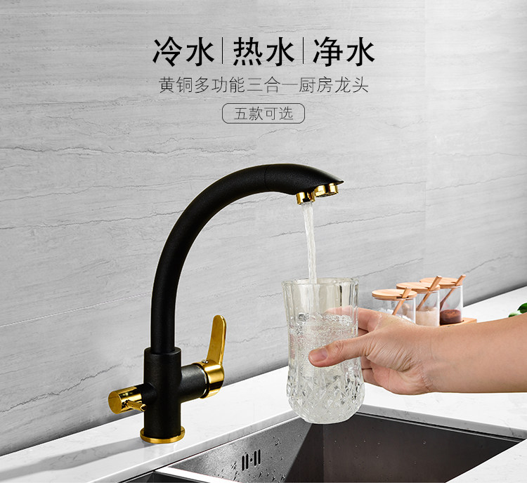 All-Copper Pure Faucet Hot and Cold Sink Faucet Three-In-One Ro Direct Drinking Faucet Black Gold