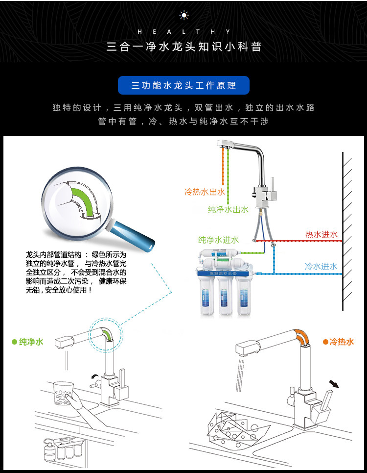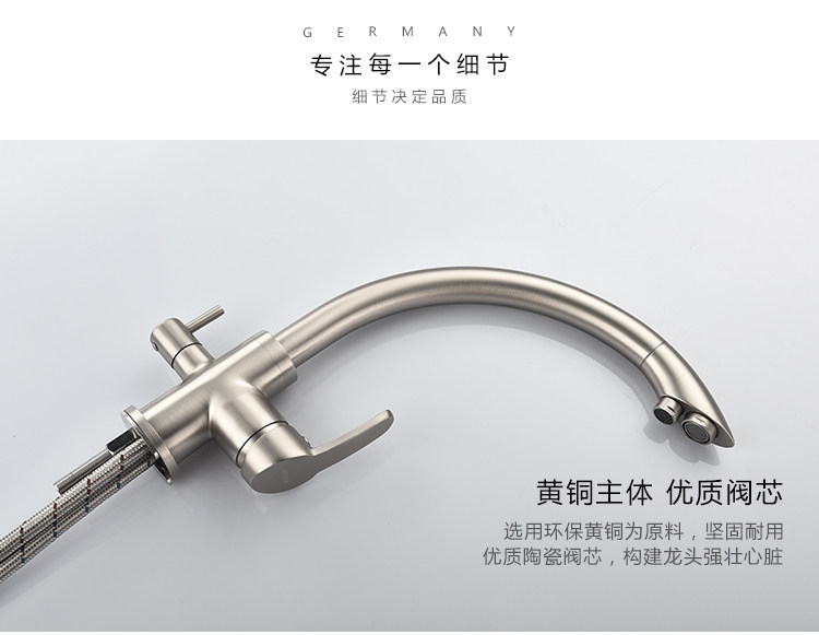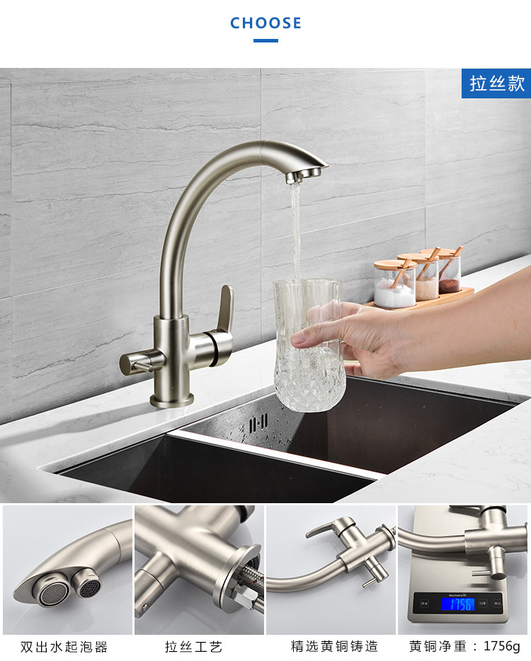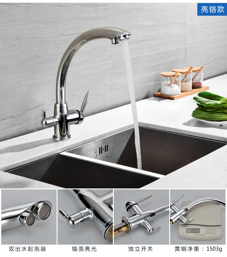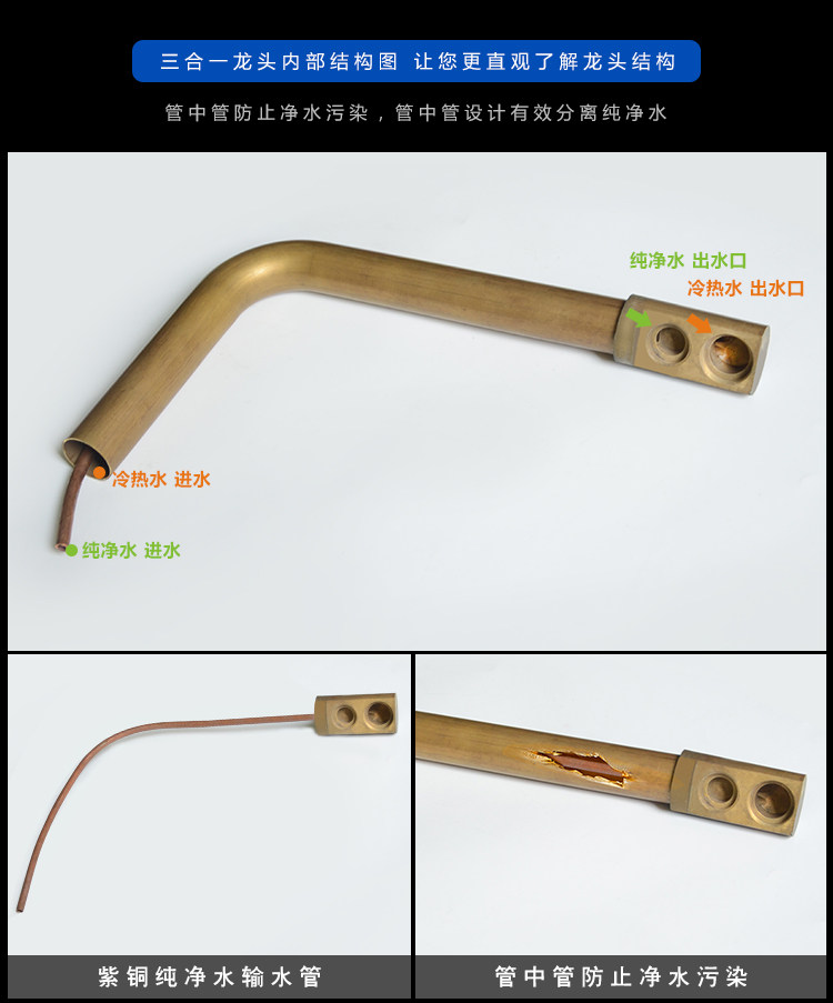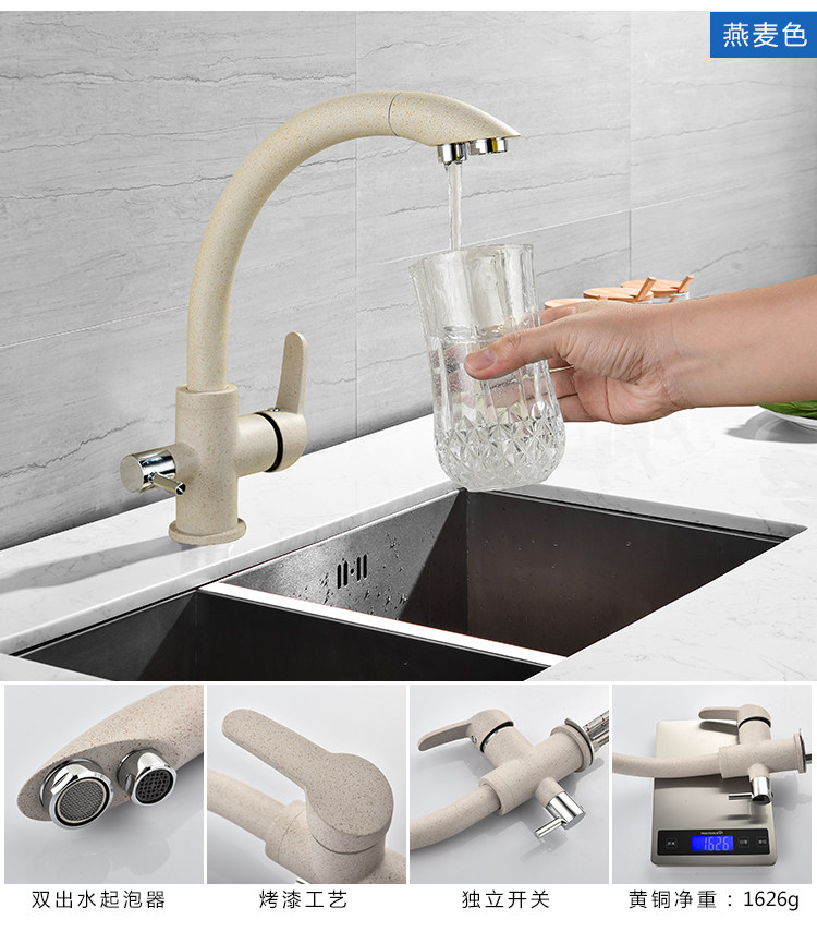All-Copper Pure Faucet Hot and Cold Sink Faucet Three-In-One Ro Direct Drinking Faucet Black Gold
