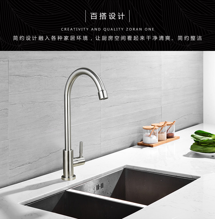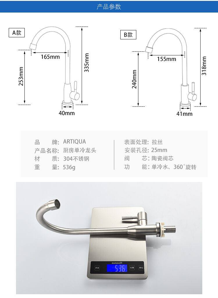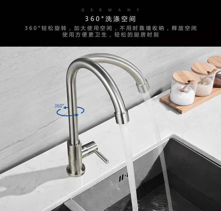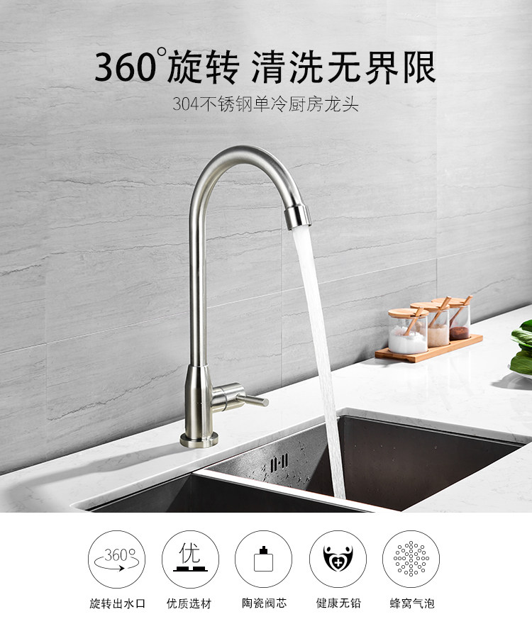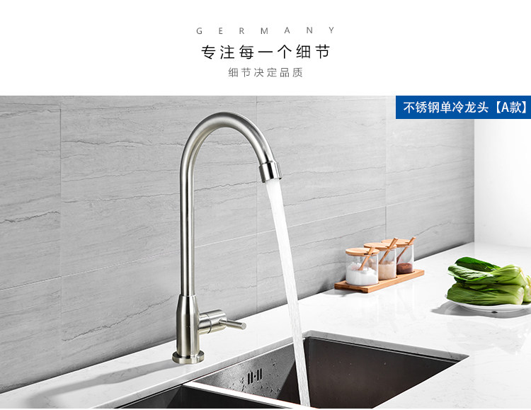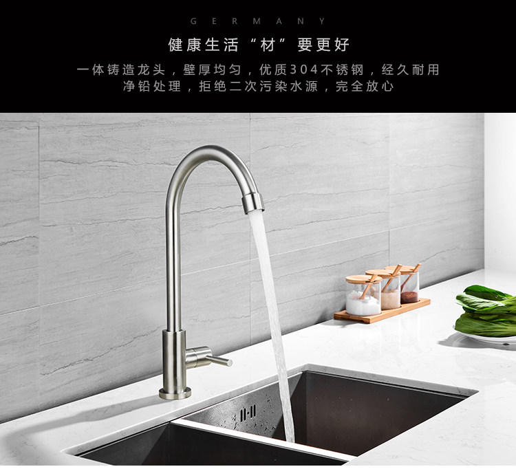 Artiqua Single Cold Kitchen Faucet 304 Stainless Steel Sink Faucet for Washing Vegetables, Dishwashing, Balcony, and Laundry Sink