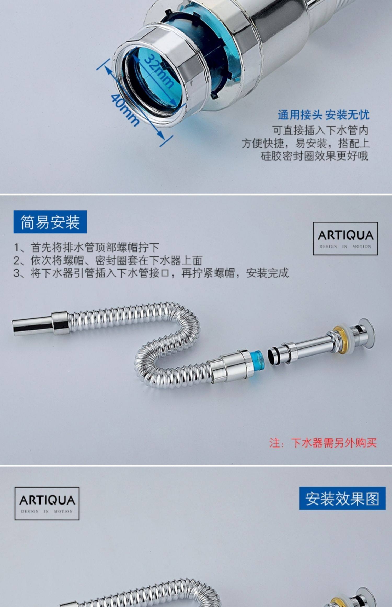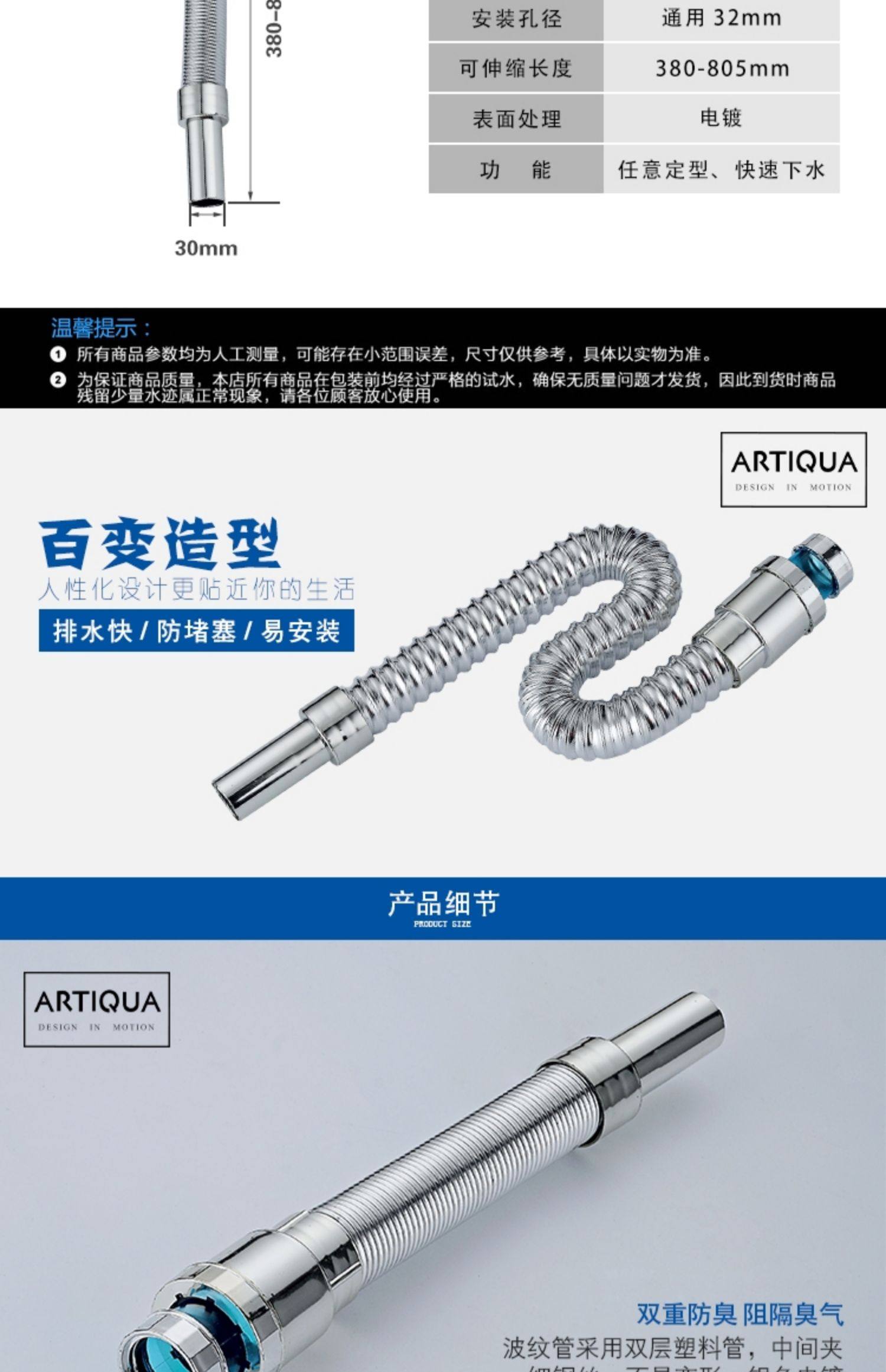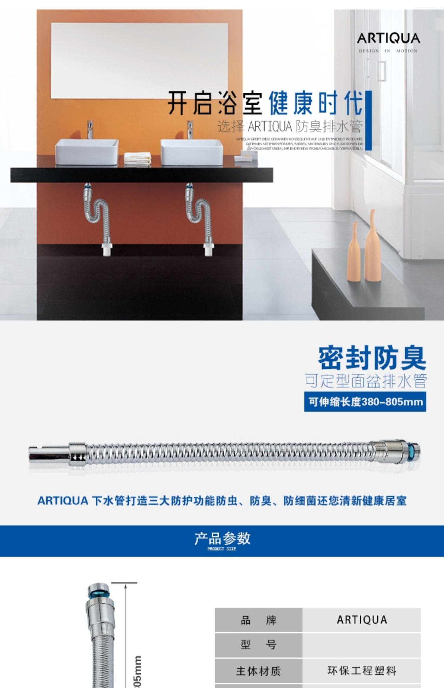 Artiqua Plastic Anti-Odor Drain Pipe, Drainage Pipe, Basin Washbasin Drain, Anti-Odor Water Pipe, Bendable
