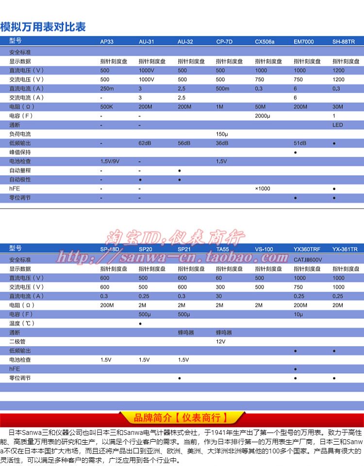 Sanwa imported Sanhe YX360TRF high-precision pointer multimeter mechanical anti-drop analog repair table