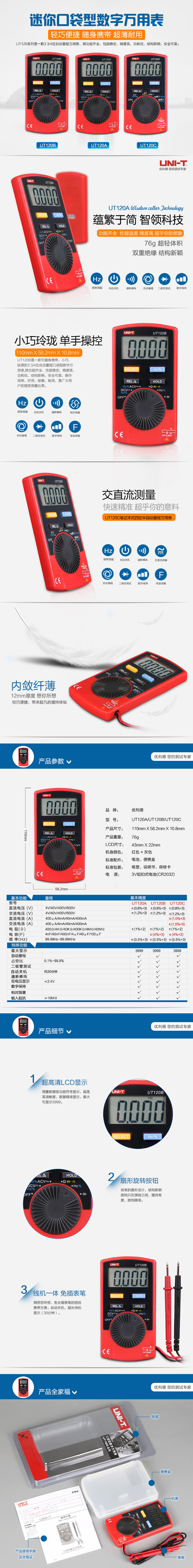 Ut10A Notebook-Style Digital Multimeter | Uliide Lightweight, Compact, Intelligent Digital Display Automatic Range Meter Ut120C