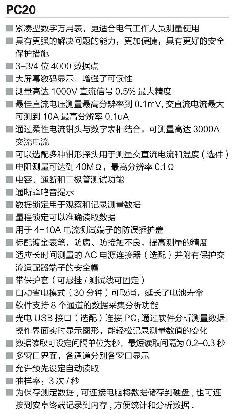 Sanwa Pc20 Imported High-Precision Compact Digital Multimeter with Automatic Range and USB Communication