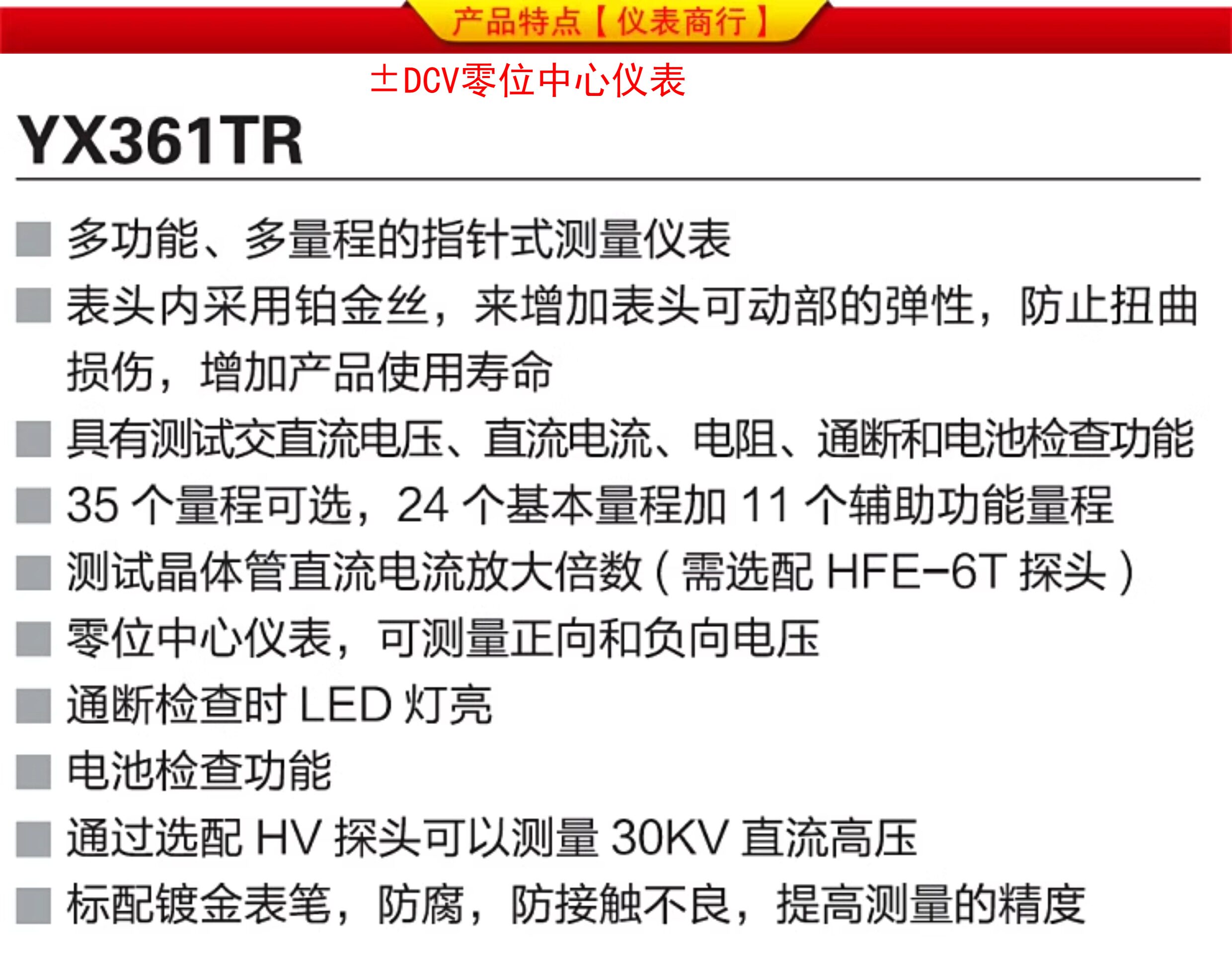 Sanwa YX-361TR pointer multimeter high-precision large-range mechanical analog meter 10K resistance range