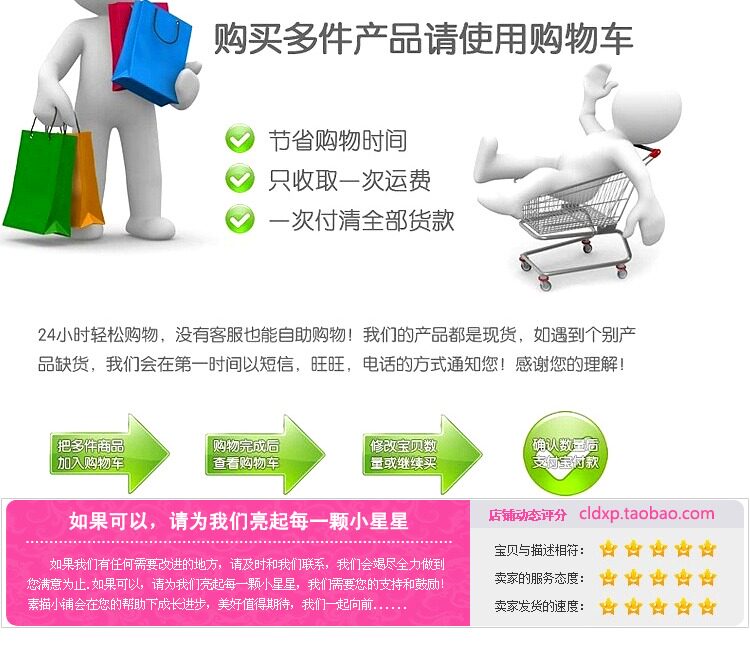 2)The shipping cost is normally charged by every 0.5KG. So if you buy a product that is only 0.1KG then you might consider buying 2-3 PCS per time which will not add more shipping cost for your order.
