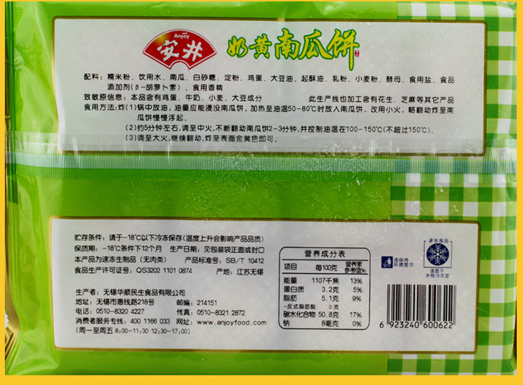 Anjing Pumpkin Cake Custard Flavor Fried Food 320g*4 Bags Special Dessert Pastry Gourmet Frozen