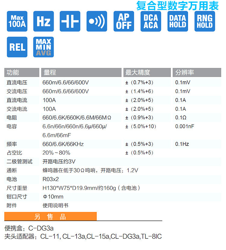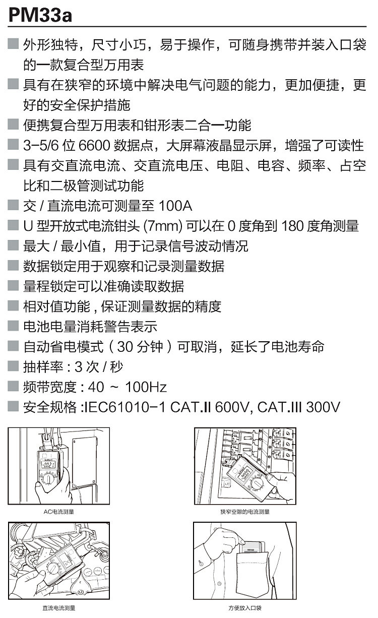 Sanwa PM33A high-precision composite portable digital multimeter AC and DC 100A clamp meter