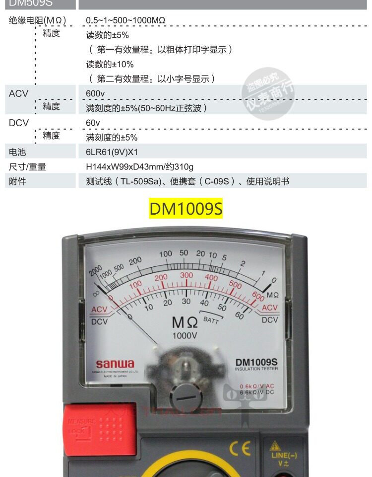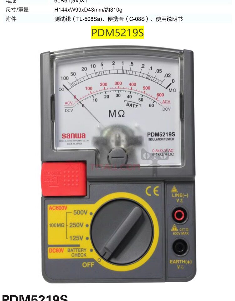 Sanwa Sanwa PDM509S/PDM1529S/PDM5219S pointer insulation resistance meter analog megger
