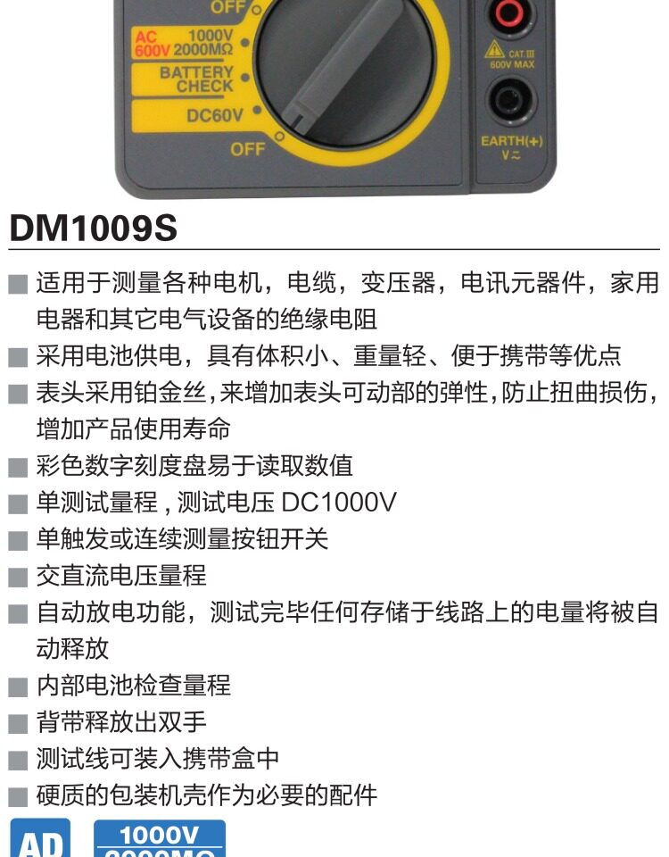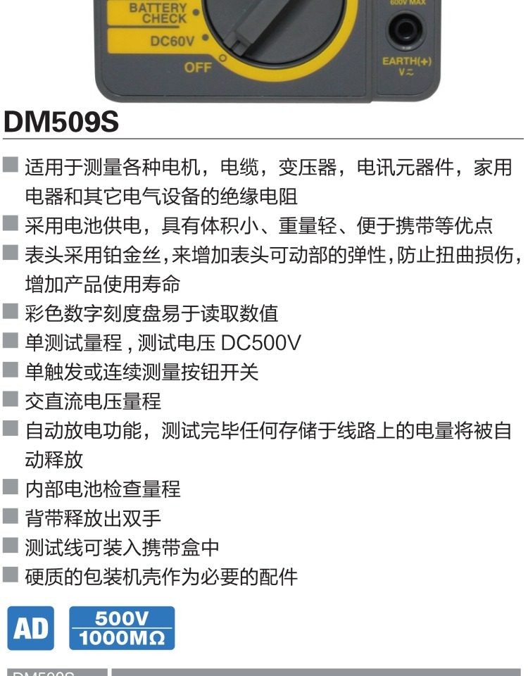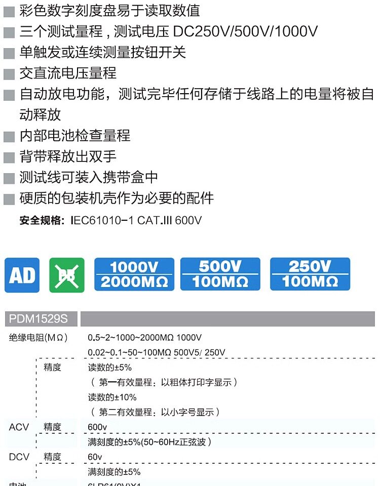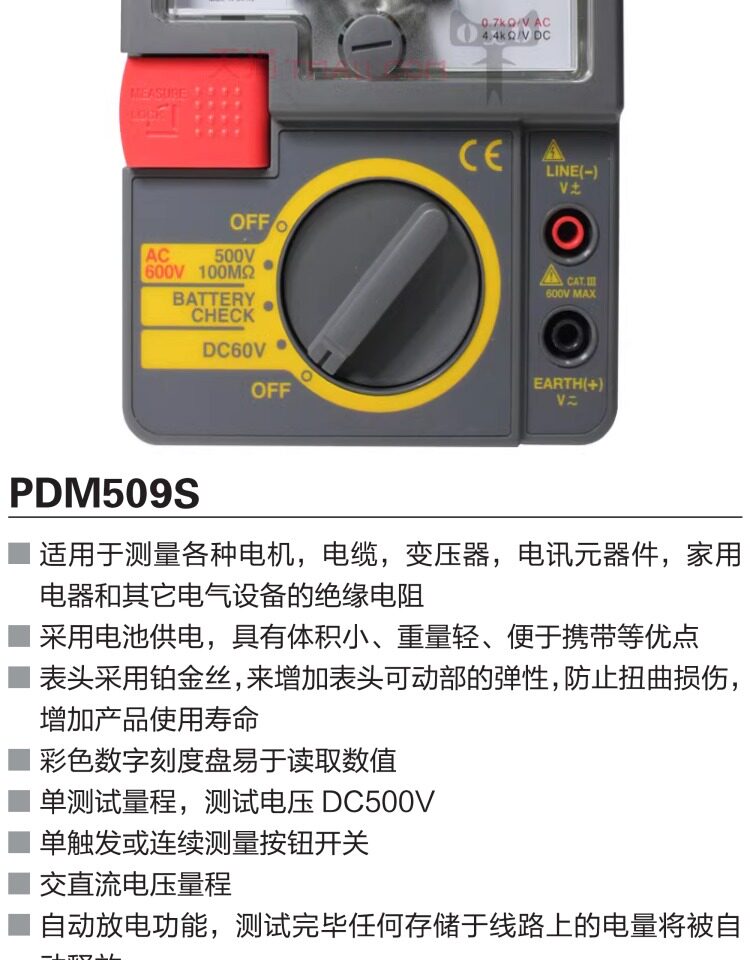 Sort by color PDM5219S 500V/100M three range,PDM509S 500V/100M single range,PDM1529S 1000V/2000M three range,DM509S 500V/1000M single range,DM1009S 1000V/2000M single range