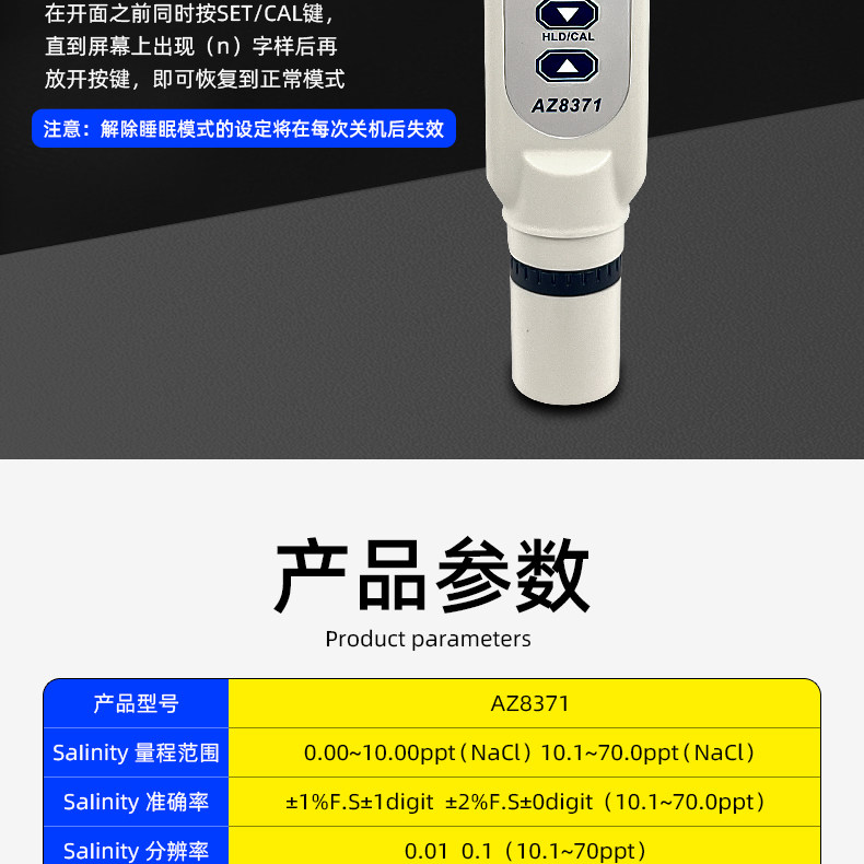Taiwan Hengxin Az8371 Digital Salinity Meter Seawater Food Salinity Meter Digital Display Salinity Meter for Aquaculture