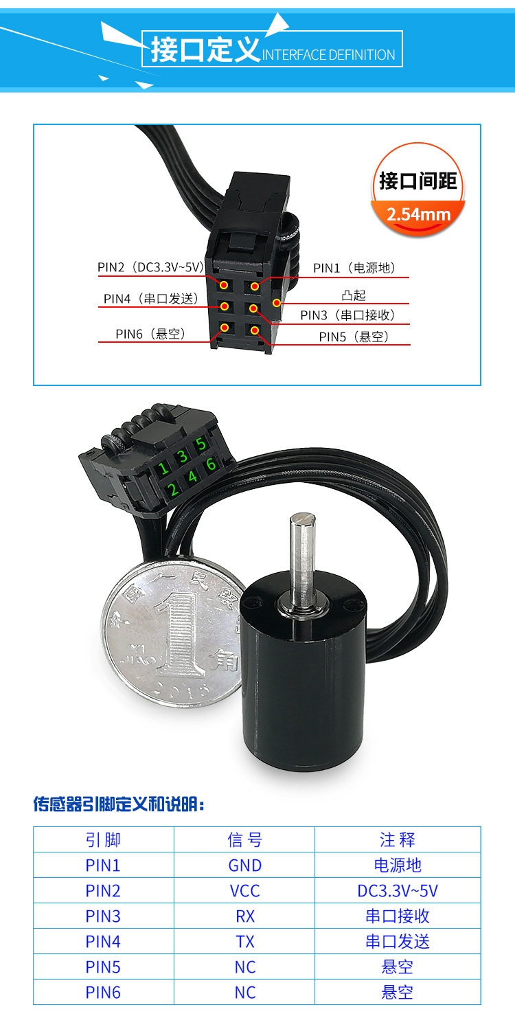 Uart Serial Port Output 360-Degree Absolute Position Encoder Precision Rotation Angle Sensor Robot Long Qiu