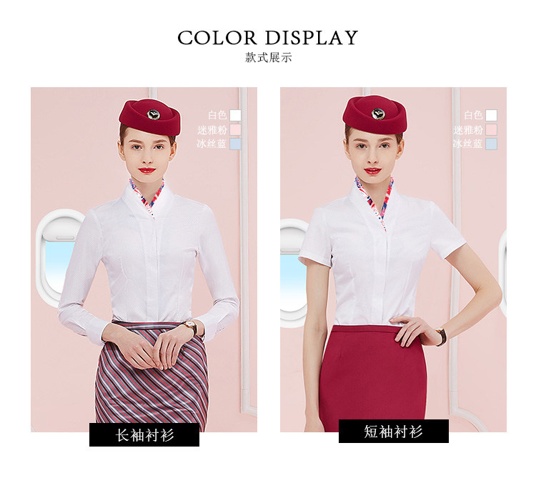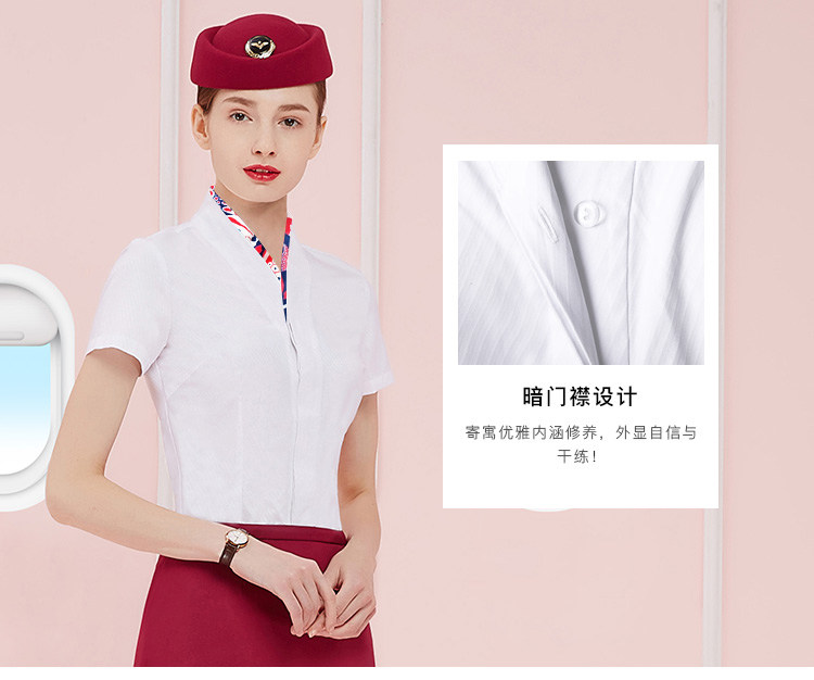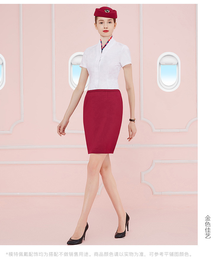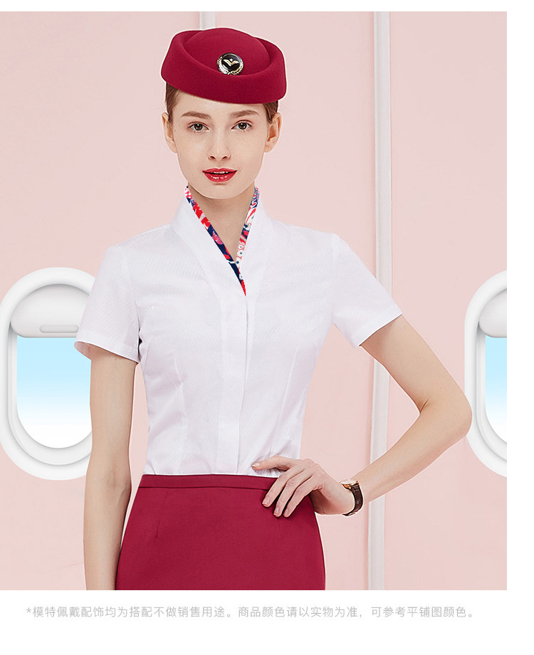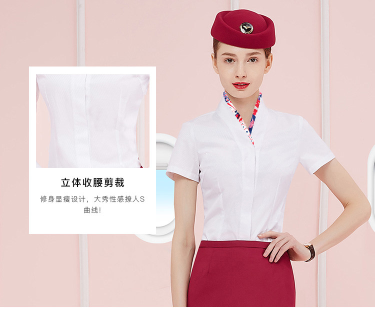 Ol professional attire female V-neck stewardess white shirt short-sleeved skirt summer flight attendant front desk interview overalls suit