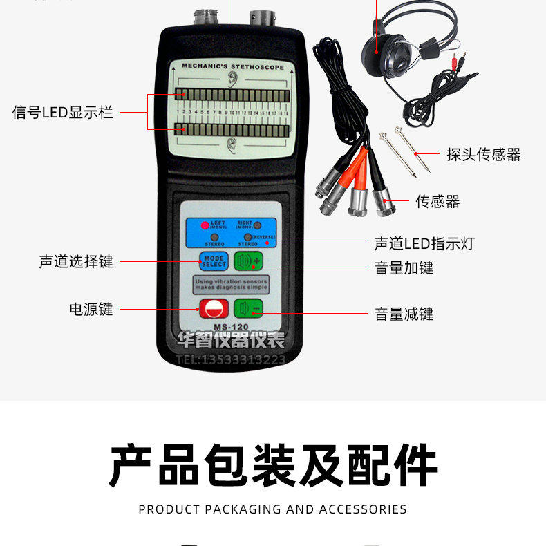Lantai Ms-120 Mechanical Fault Vibration Detector Engine Water Pump Oil Extraction Machine Noise Stethoscope