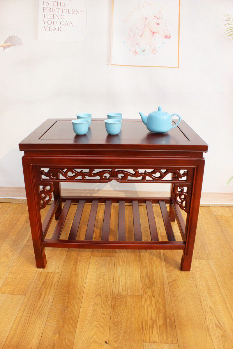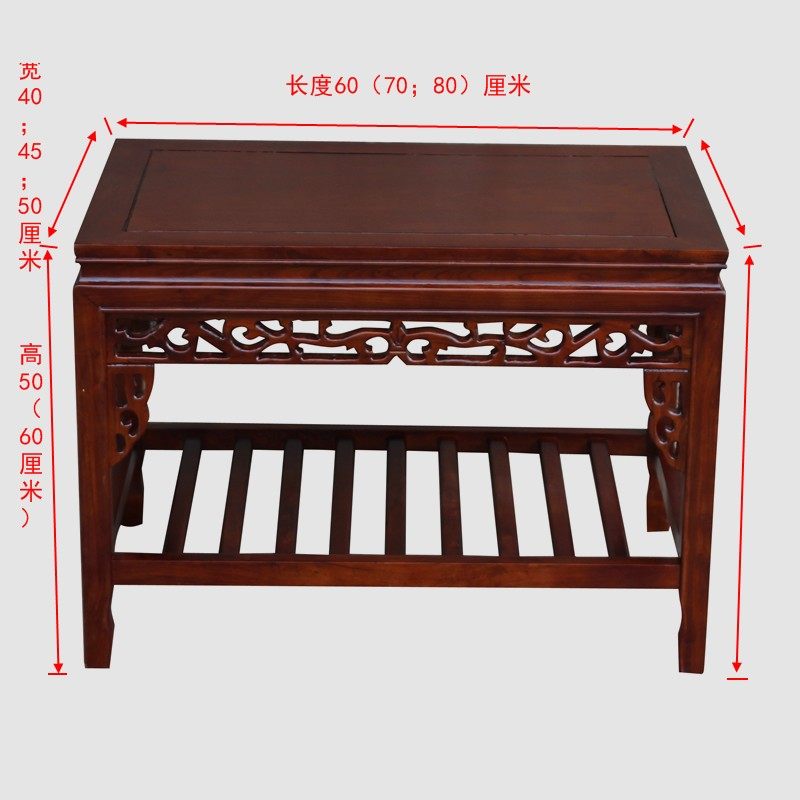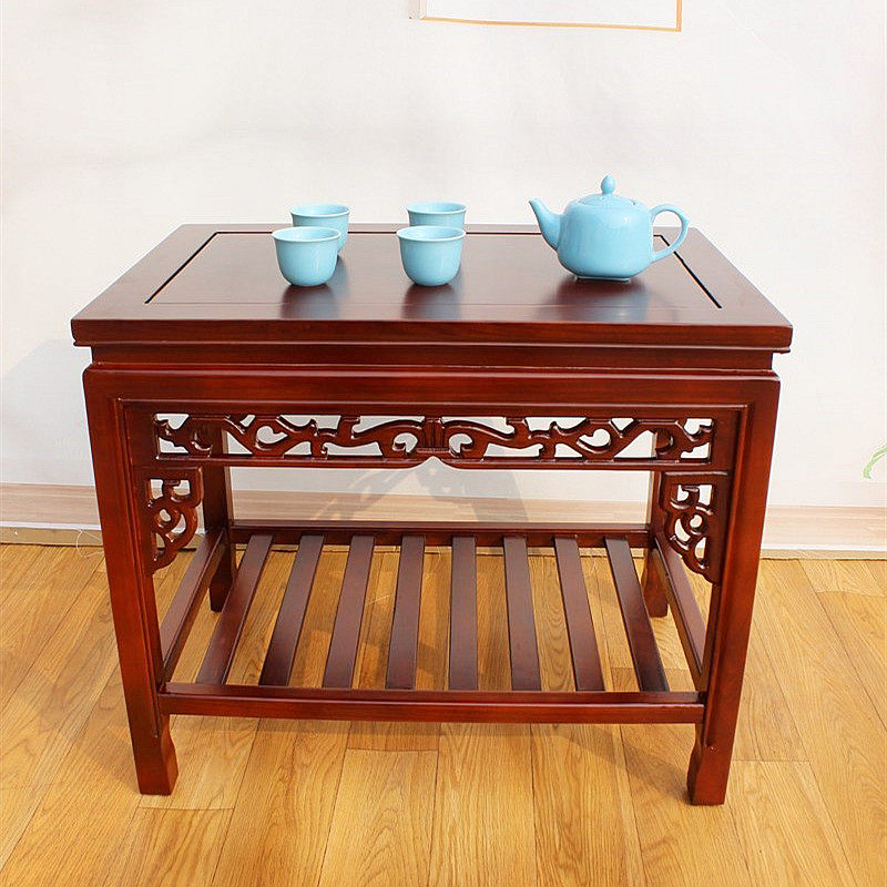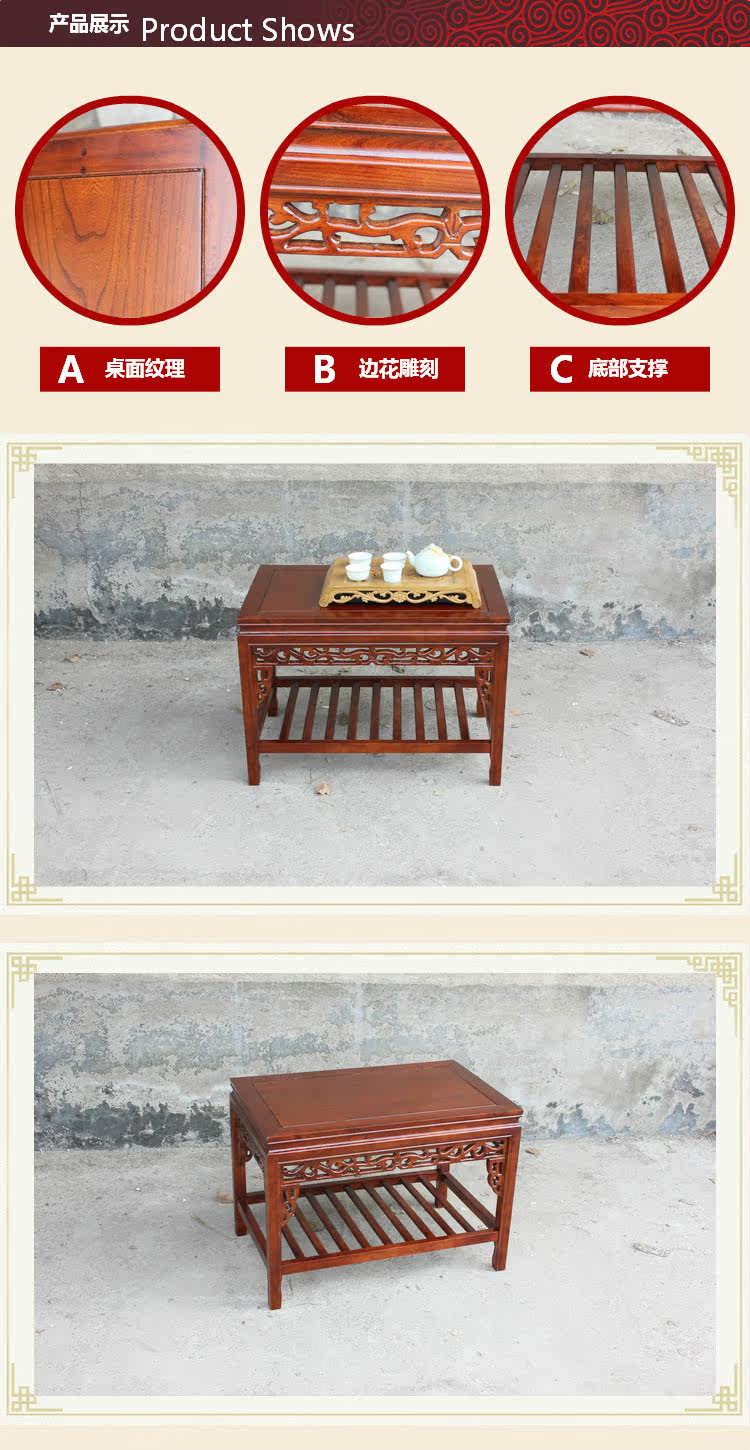 Modern Minimalist Chinese-Style Antique Imitation Solid Wood Coffee Table, Rectangular Floor Table for Living Room, Stone Bonsai Table, Elm Wood Small Tea Table