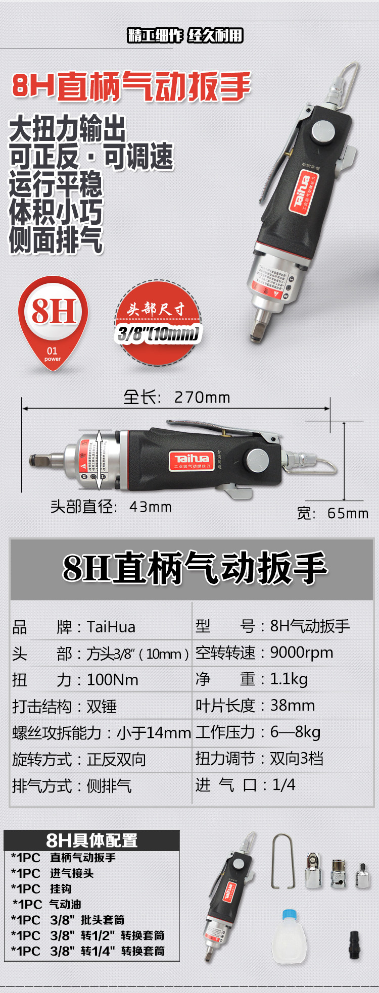 Mini Straight Handle Small Air Cannon Straight Pneumatic Wrench Air Wrench Straight Air Wrench Air Wrench Air Wrench Air Wrench