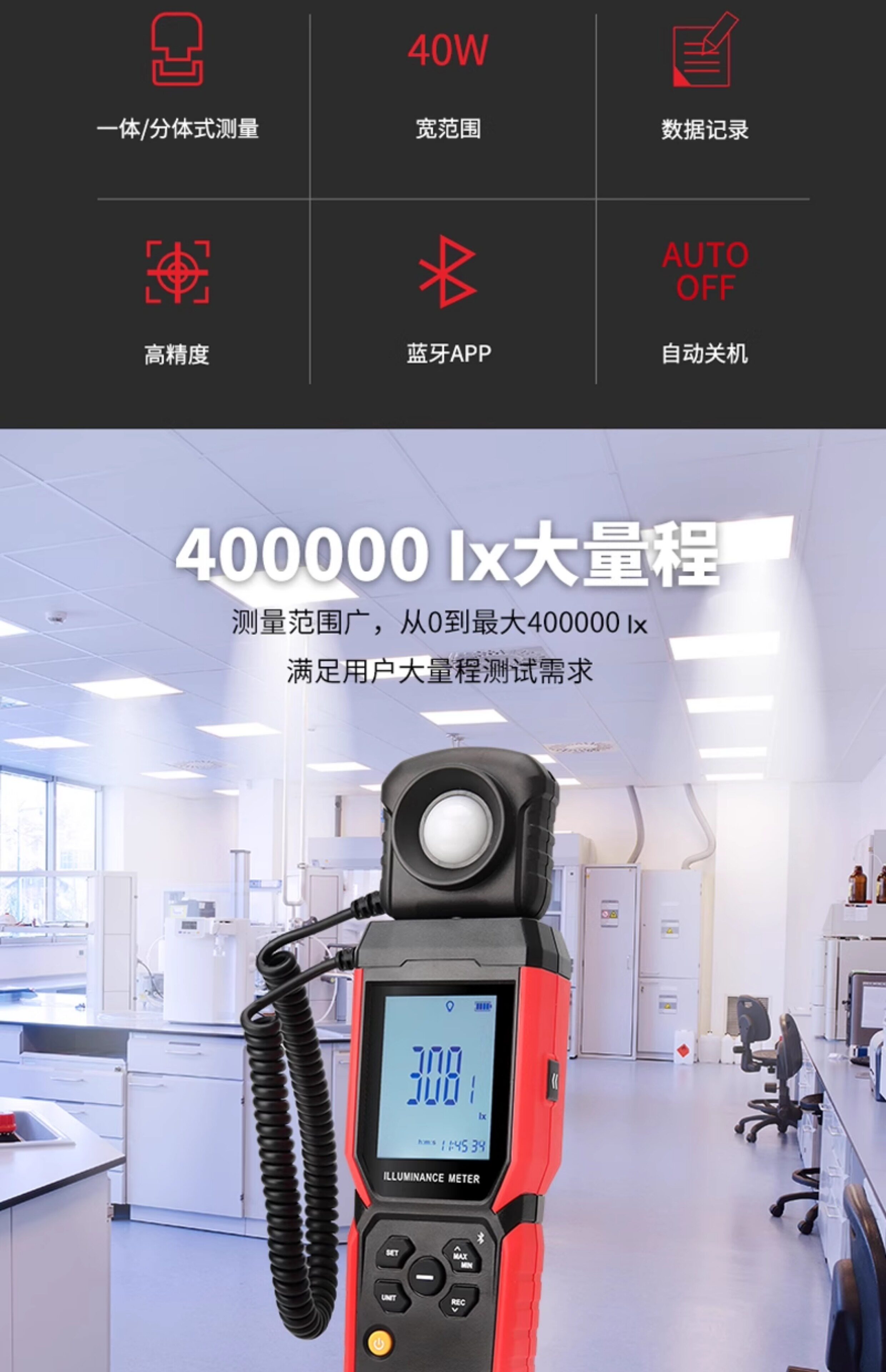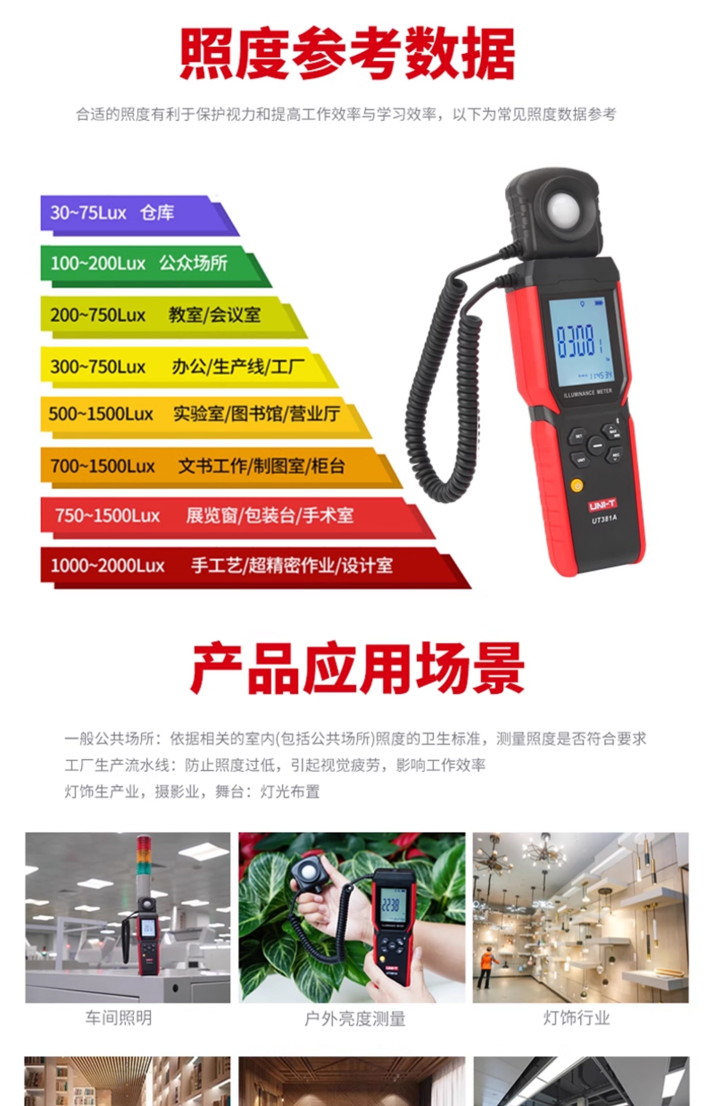 Uliide Ut381A/Ut382 Handheld Digital Illuminance Meter for Office and Laboratory Environments Lux Meter