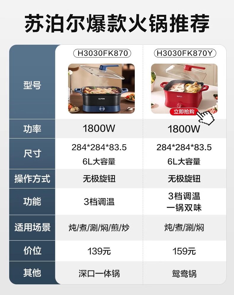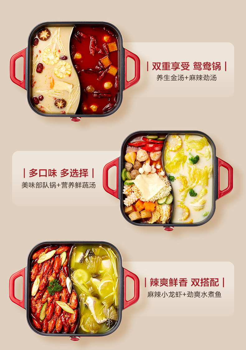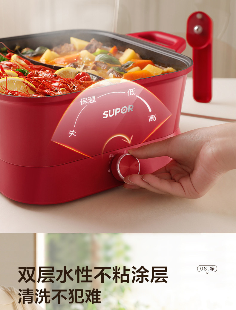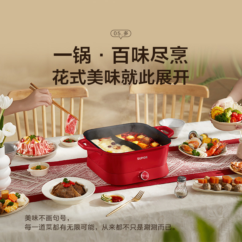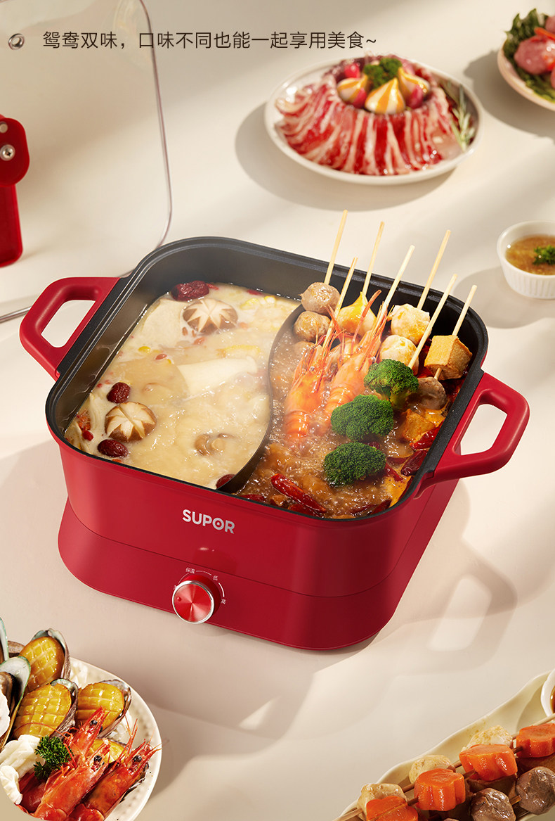 Supor Yuanyang Electric Hot Pot, Multifunctional Household Integrated Electric Cooker, Electric Cooking Pot, Flagship Genuine Product
