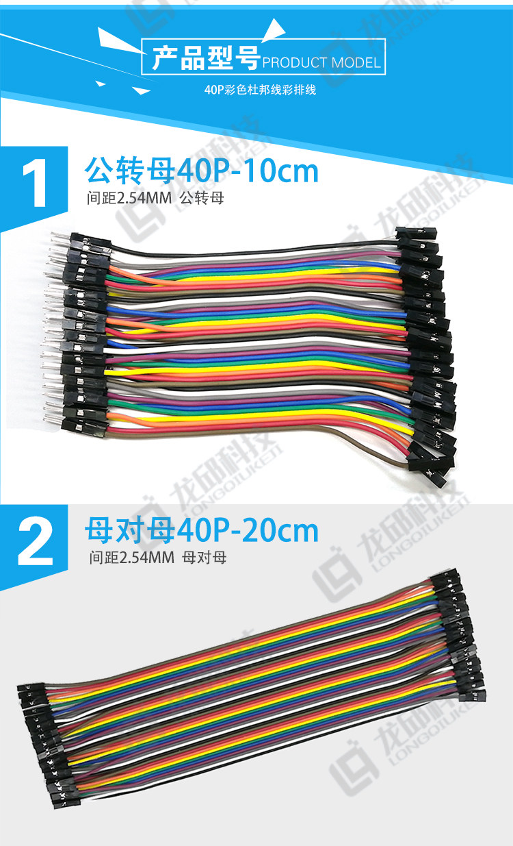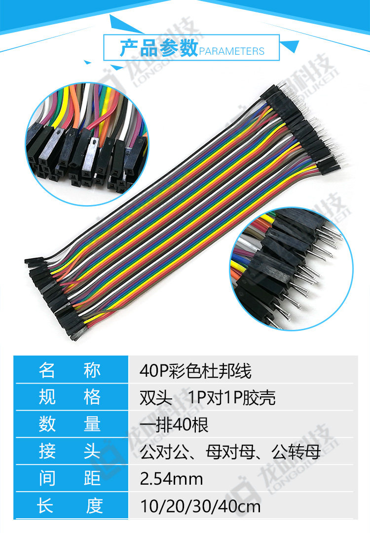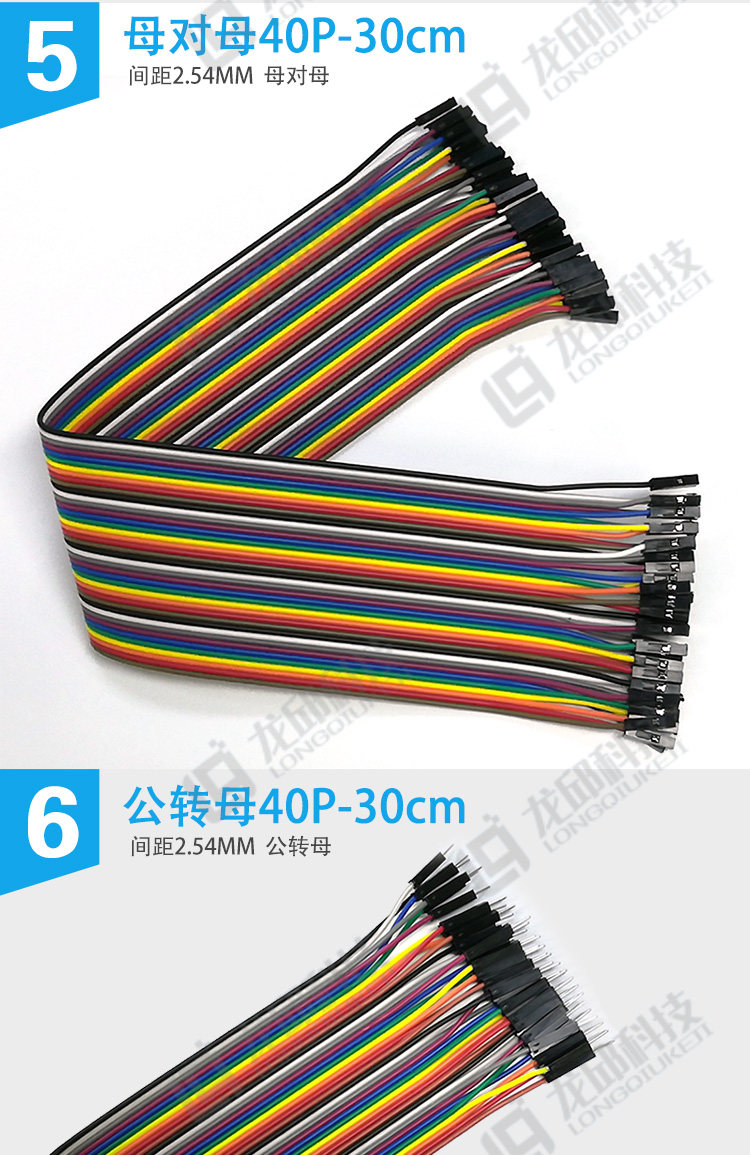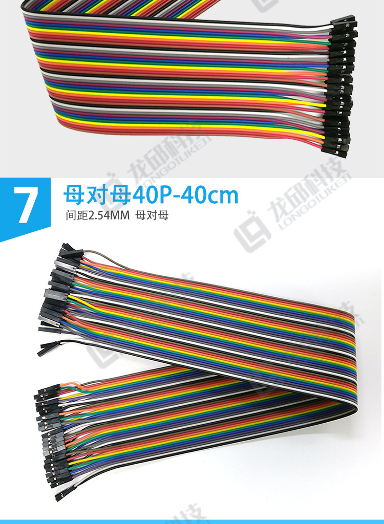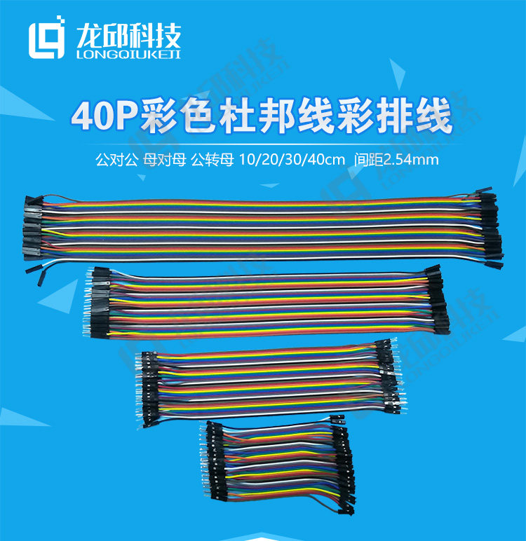 Double-Ended Dupont Cable 40P Colored Ribbon Cable Connector Male-To-Male, Female-To-Female, Male-To-Female 10/20/30/40cm