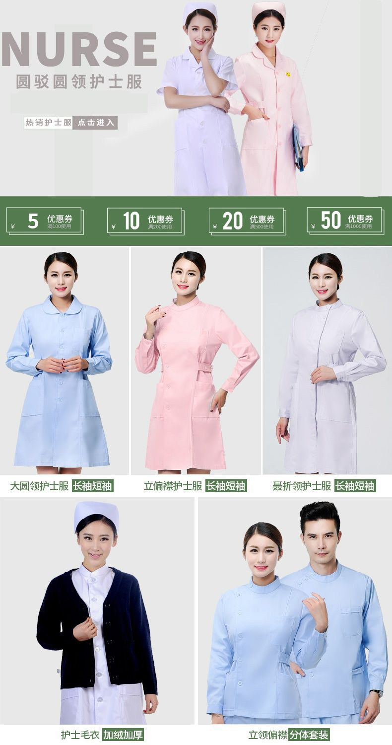 Xuelangguo Nurse Uniform Short-Sleeved Summer Wear Pink White Blue Long-Sleeved Winter Wear Stand-Up Collar Lab Coat Pharmacy Work Uniform