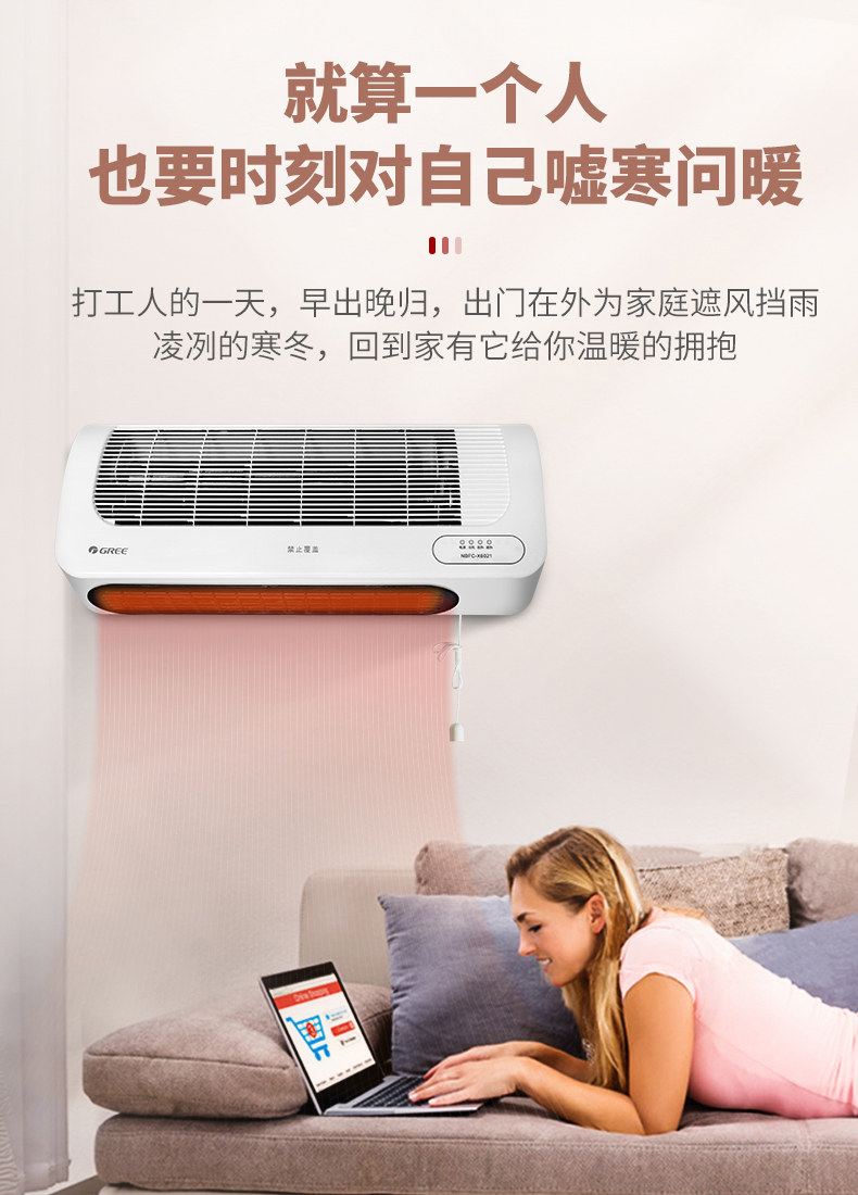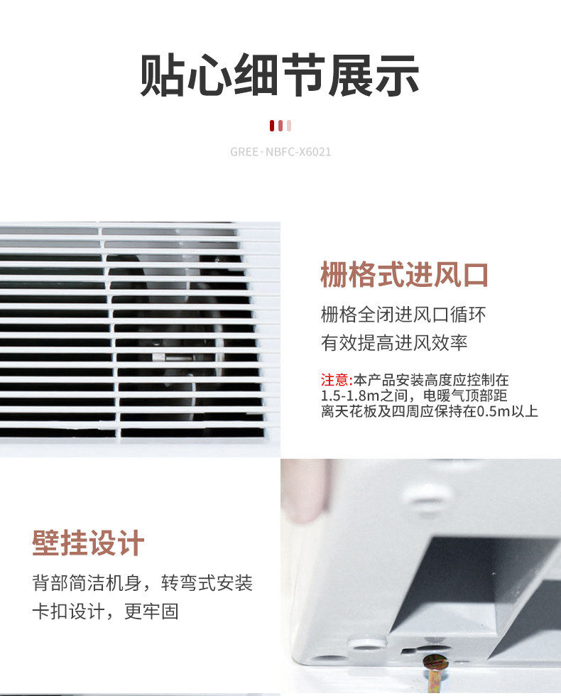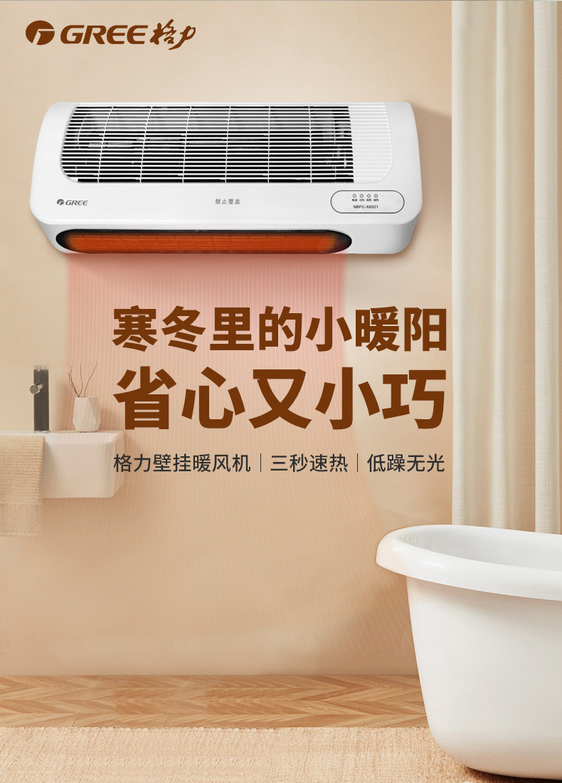 Gree Electric Heater, Wall-Mounted Remote Control Heater for Home, Dual-Use for Living Room and Bathroom,