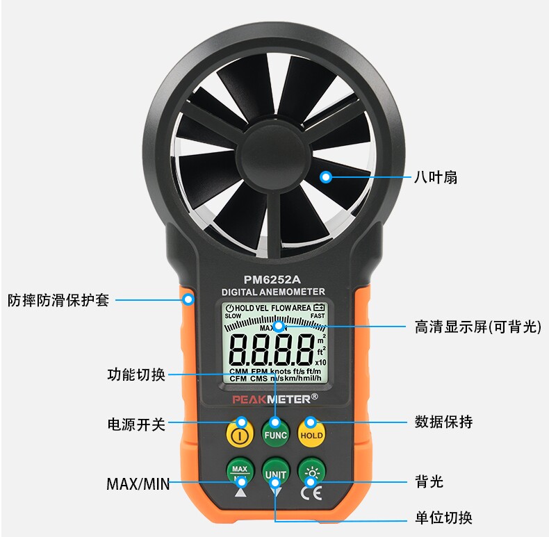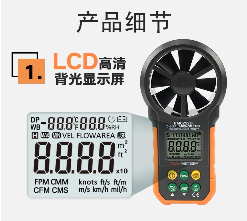 PEAKMETER Huayi PM6252A/B digital anemometer meteorological sea surface wind temperature wind humidity wind flow measurement
