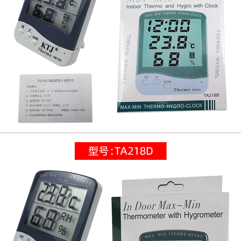 Jintuo Jia Ta218A/B/D Digital Temperature and Humidity Meter Digital Display Hygrometer Thermohygrometer Small Wall-Mounted Desktop