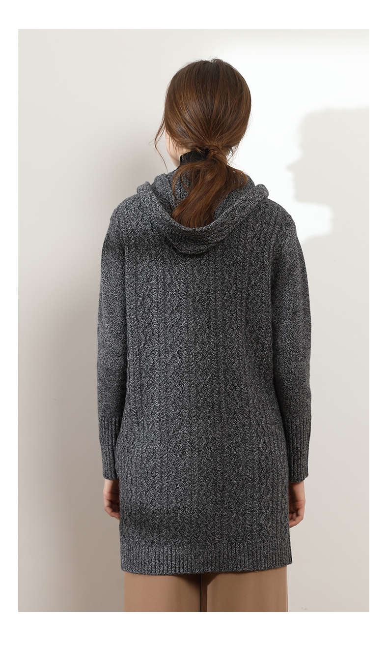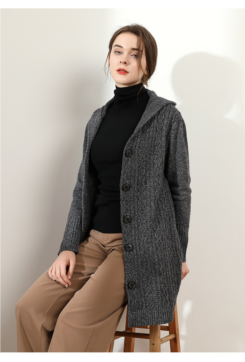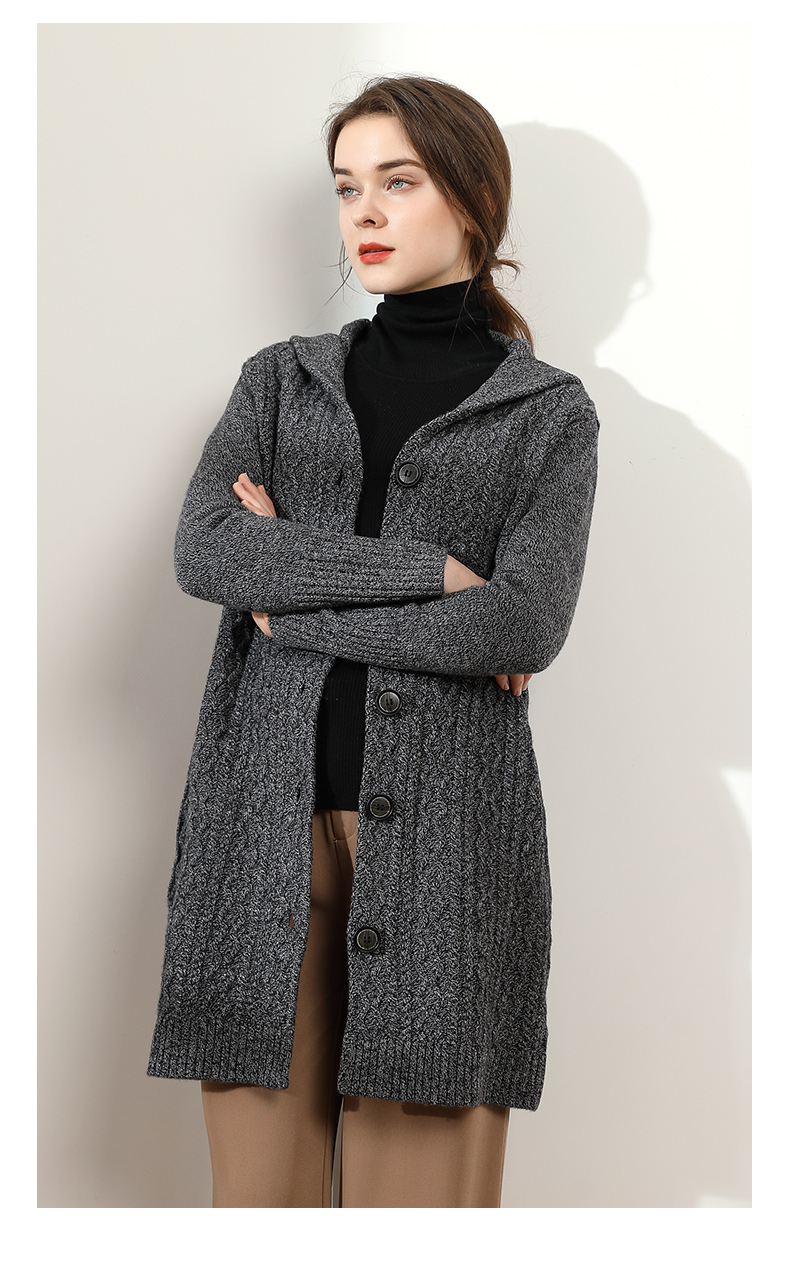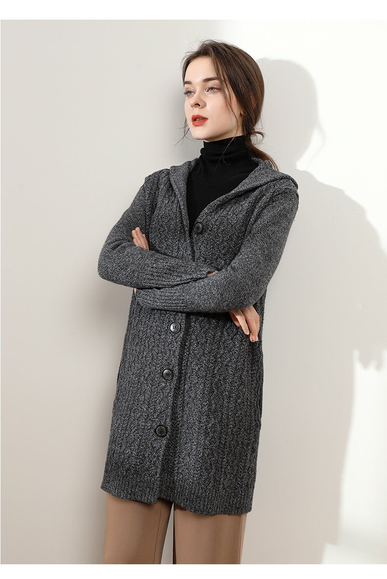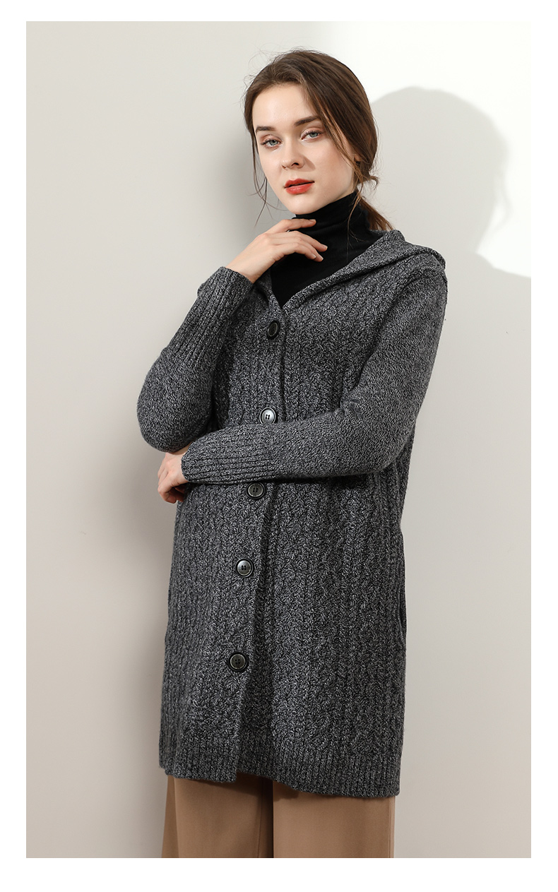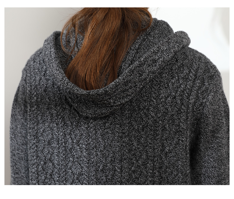 Velvet Hooded Wool Knitted Cardigan for Women, Mid-Length, Thickened, 2025 Autumn and Winter New Pure Wool Hooded Coat