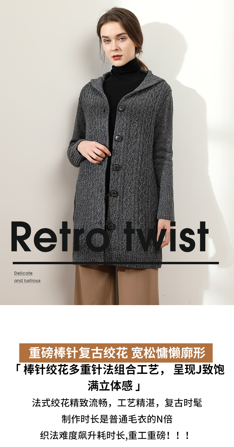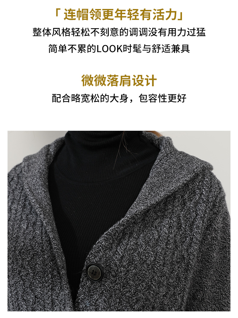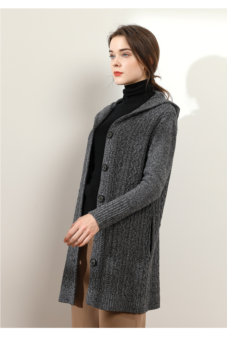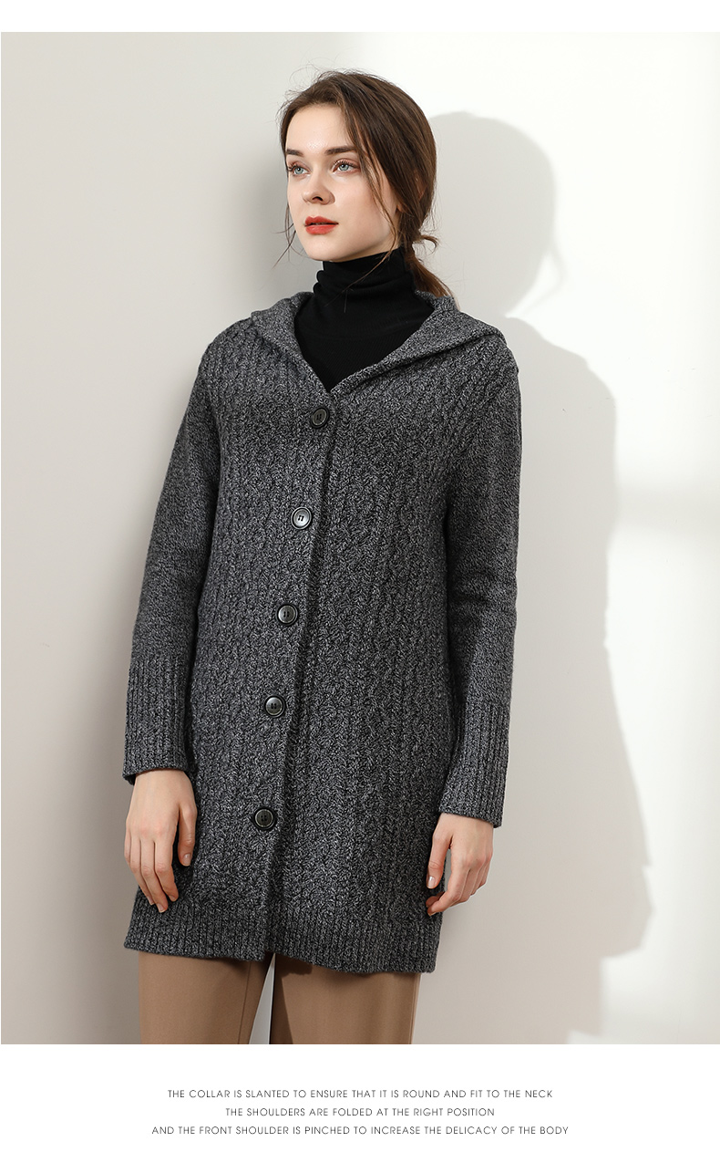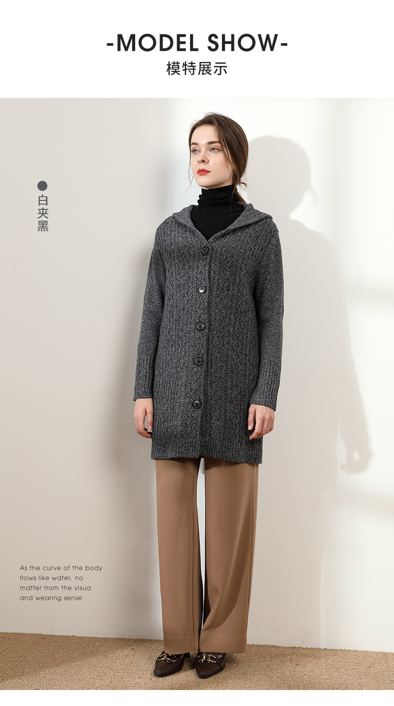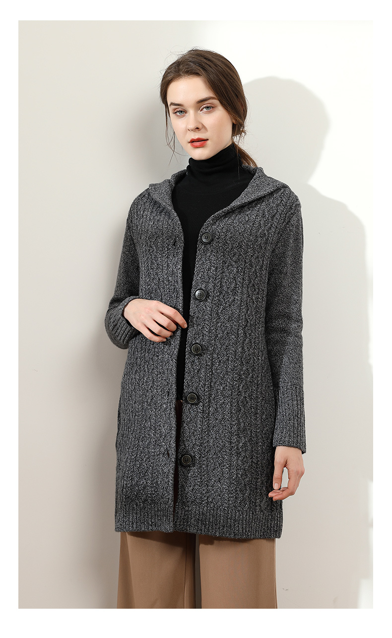 Velvet Hooded Wool Knitted Cardigan for Women, Mid-Length, Thickened, 2025 Autumn and Winter New Pure Wool Hooded Coat