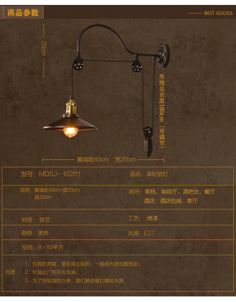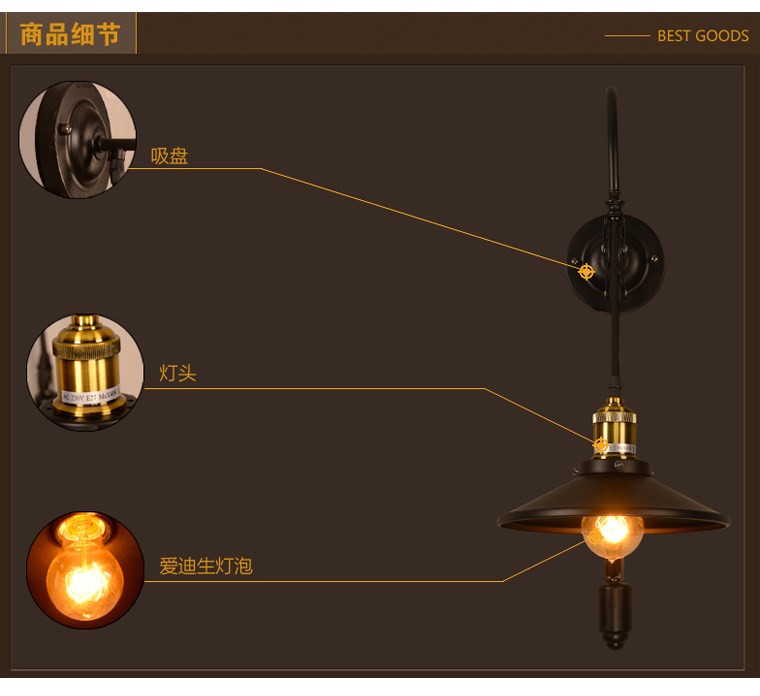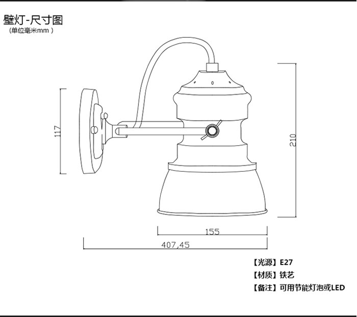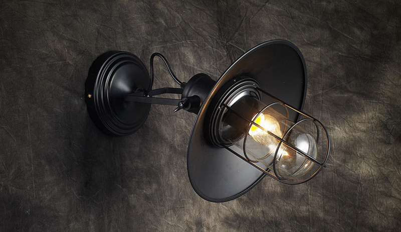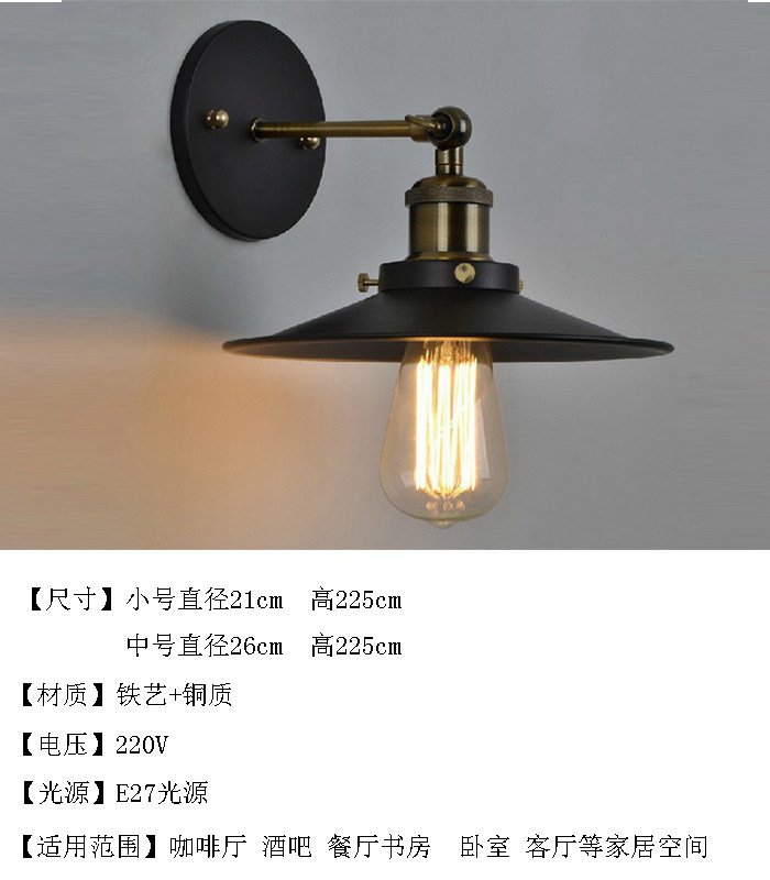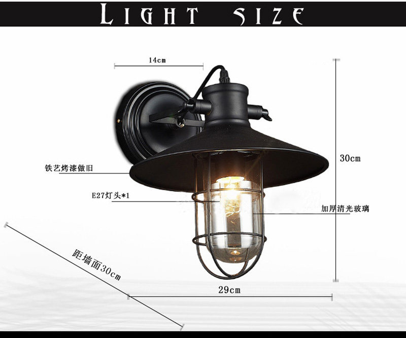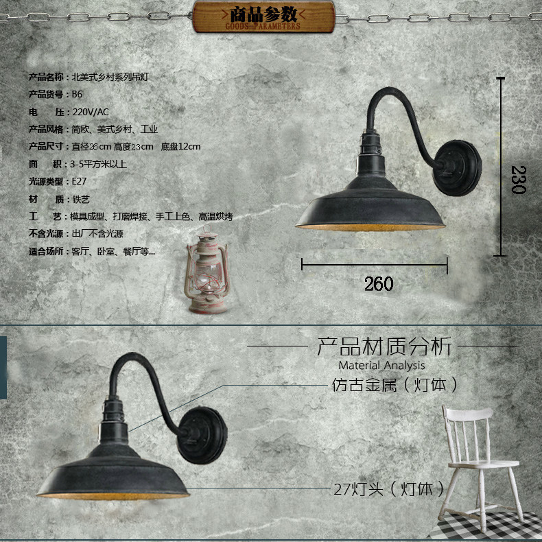 American-Style Loft Retro Industrial Wall Lamp, Nostalgic Dining Room Balcony Corridor Foyer Outdoor Wrought Iron Wall Light Fixture