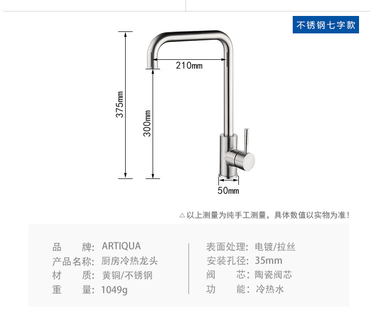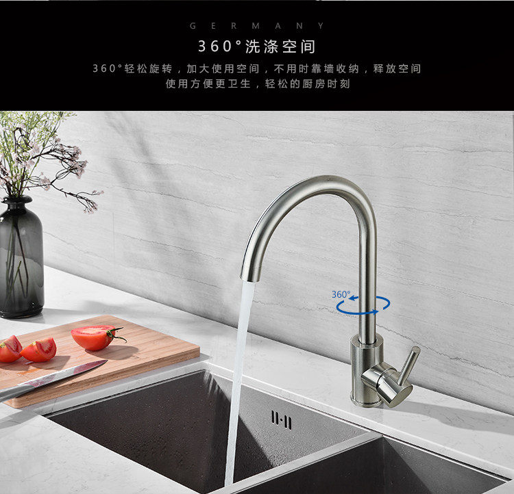 Artiqua All-Copper Kitchen Faucet Hot and Cold Sink Faucet Stainless Steel Sink Rotating Laundry Sink Faucet