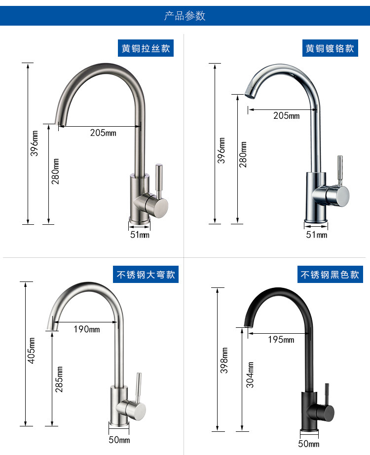 Color Classification Brushed Brass Finish[Total Height 396mm],Chrome-Plated Brass[Total Height 396mm],Stainless Steel Black Model,Stainless Steel Large Bend,Stainless Steel 7-Character Style