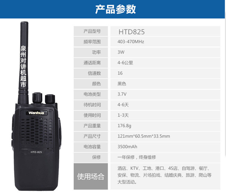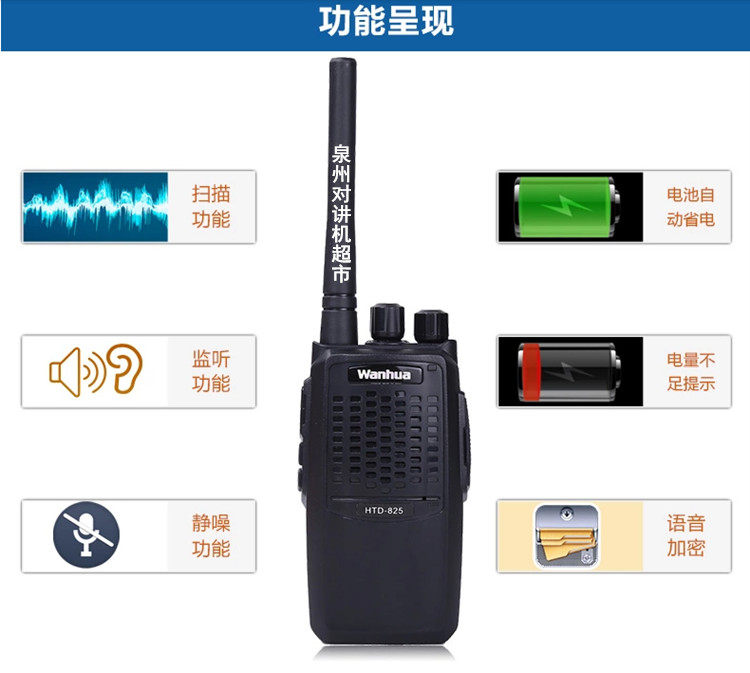 on the Original Wanhua Htd825 Walkie-Talkie, Wanhua 825 Civilian Handheld Radio for Construction Sites, Hotels, and Property Management