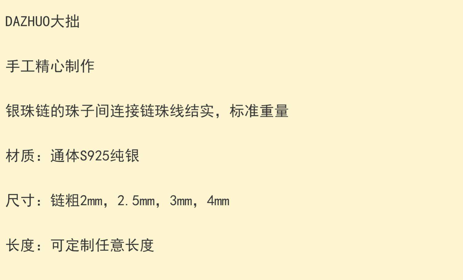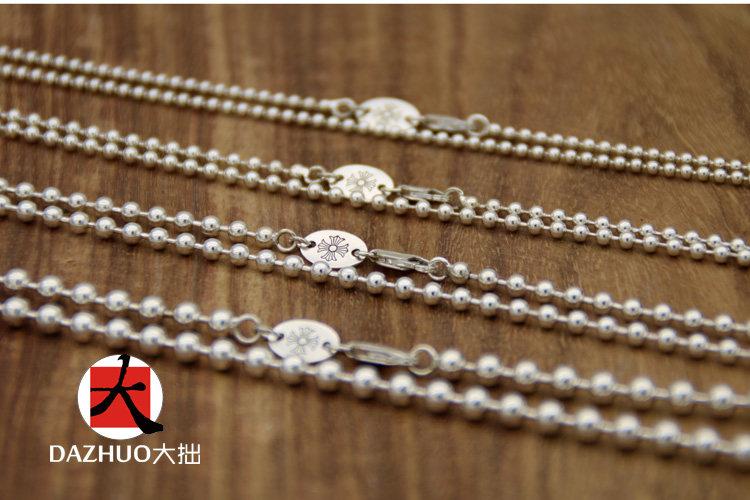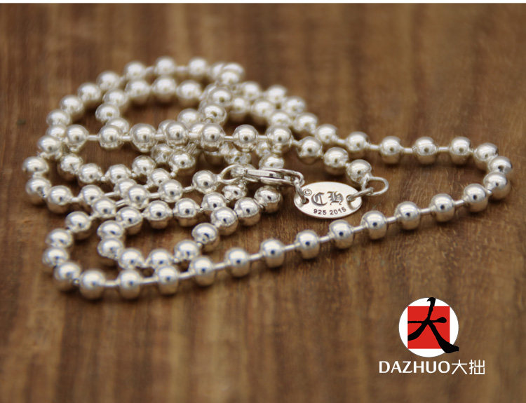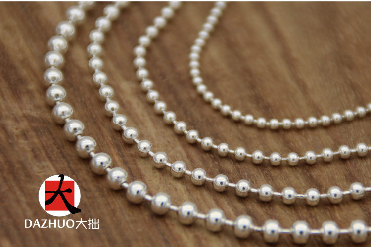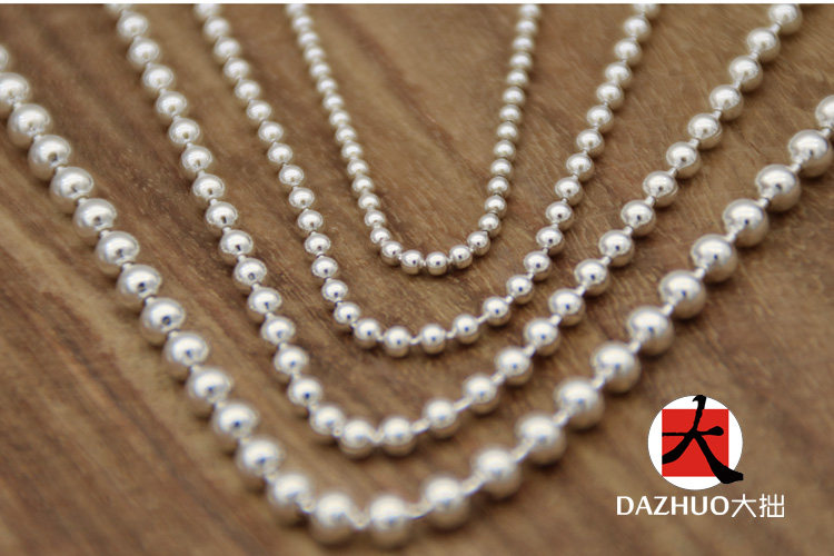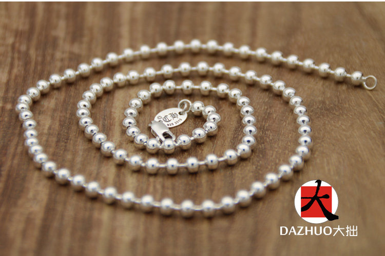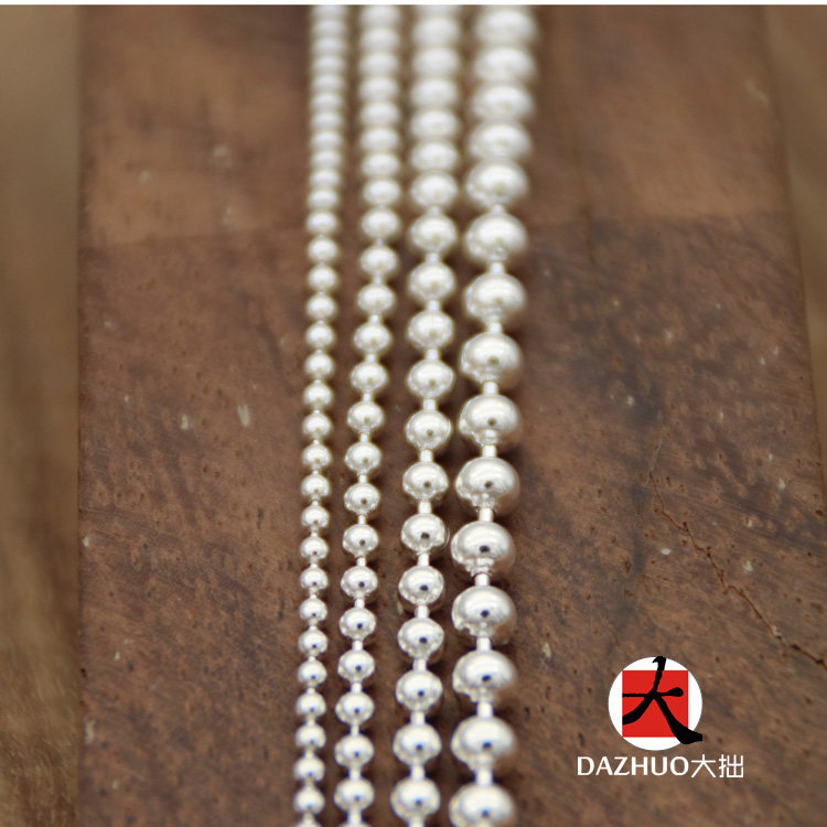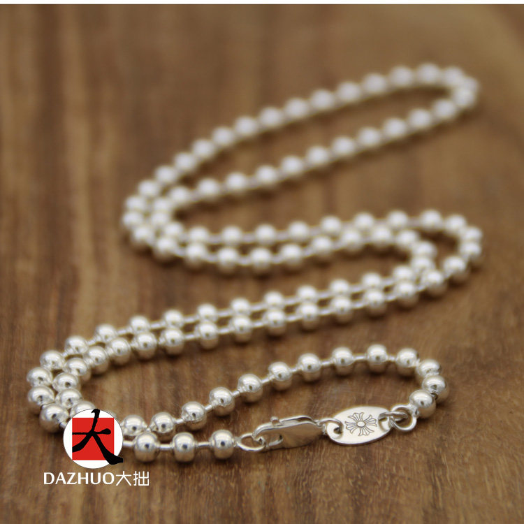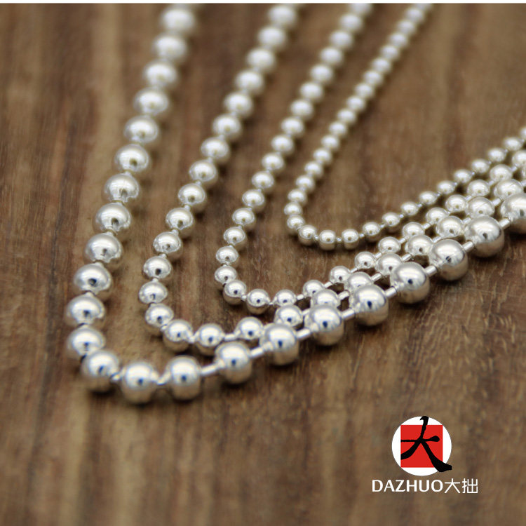Large round bead chain necklace s925 sterling silver men and women couple plain chain single chain silver beads with chain bead chain without pendant