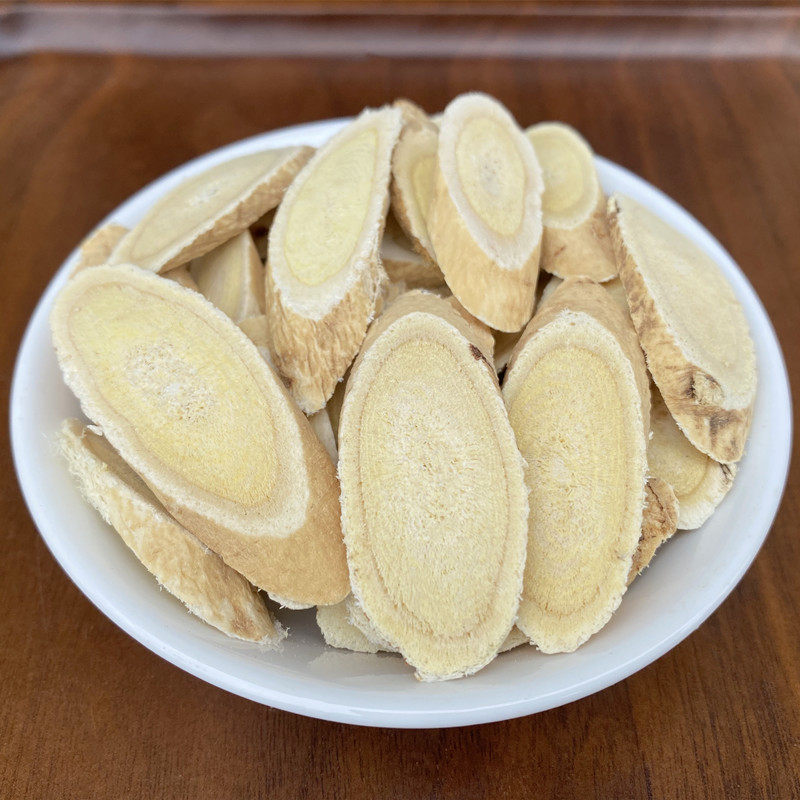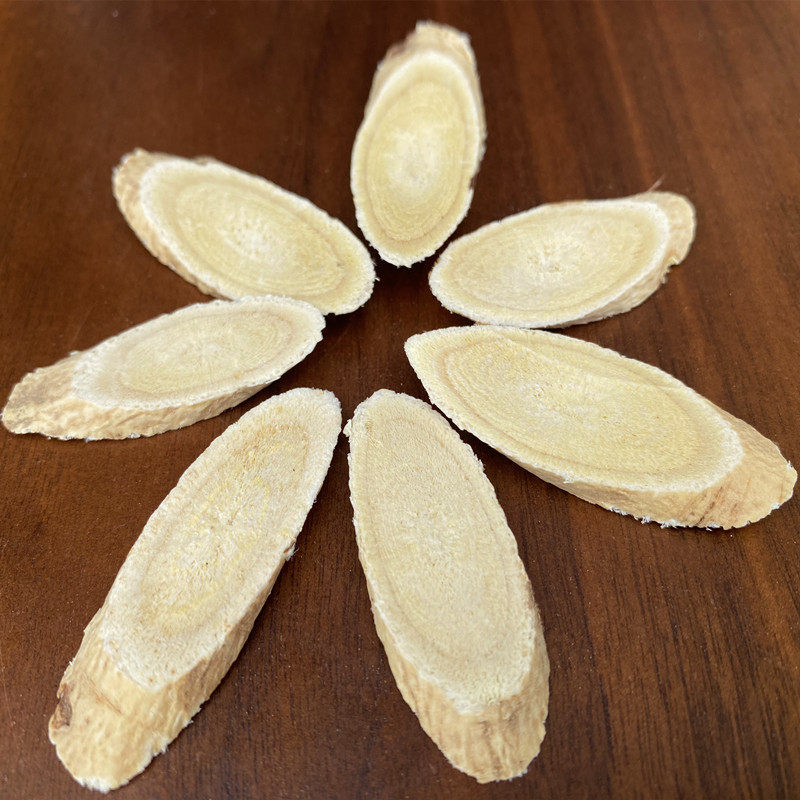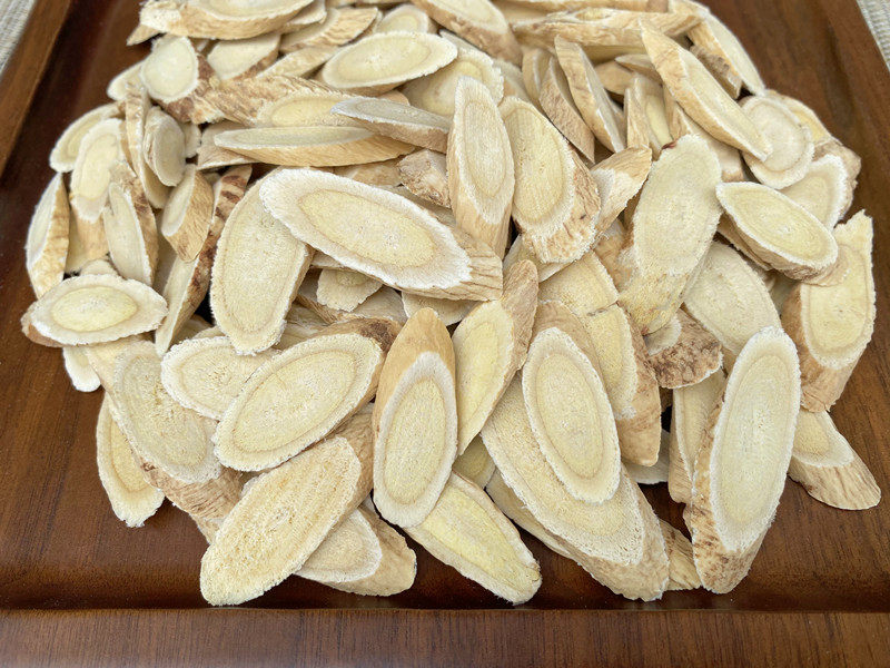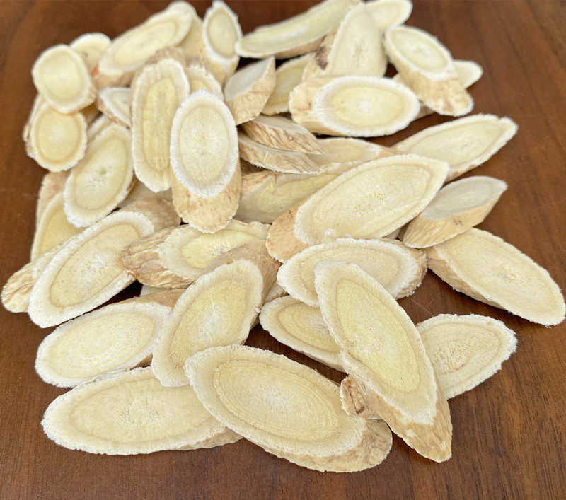 200g of large slices of astragalus for soup. Selected dried astragalus and Chinese herbal medicine Huang's slices soaked in water can be eaten with Codonopsis pilosula.