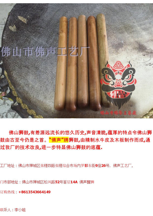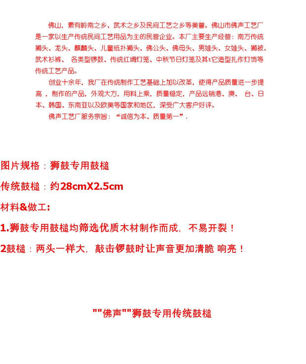 Super Value Popular Traditional Percussion Drumsticks Drum Mallets Drum Sticks for Lion Dance Foshan Nanshi Lion Dance Props Manufacturer