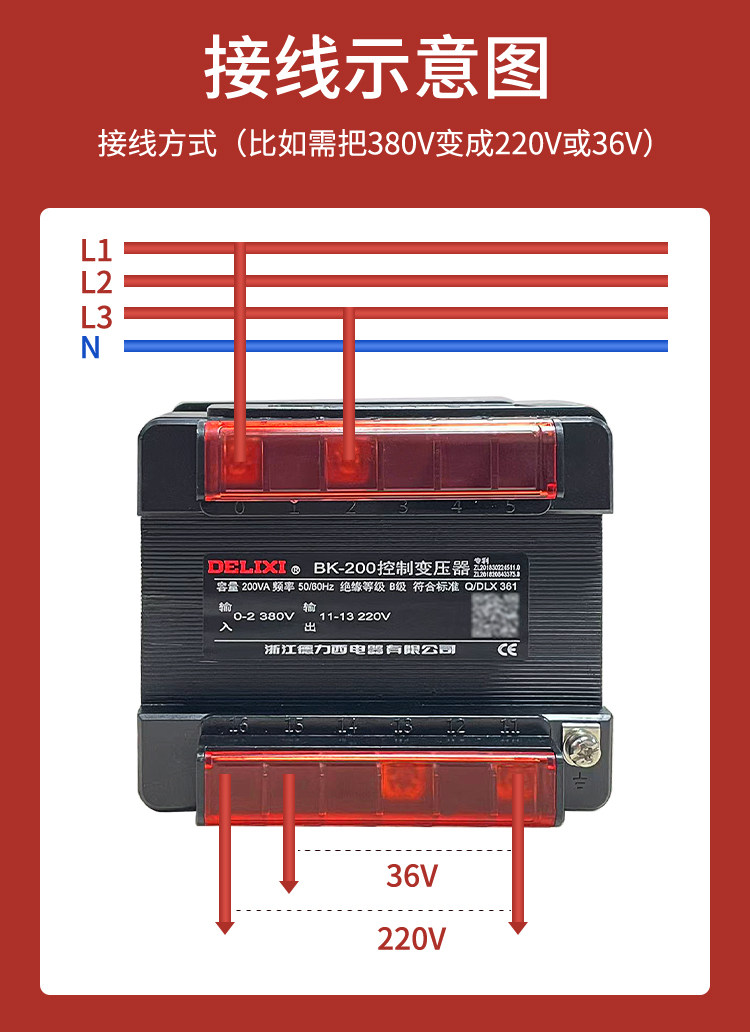 Delixi Bk-200Va Control Transformer 380V to 220V Ac Power Supply 200W 36V 110V 127V