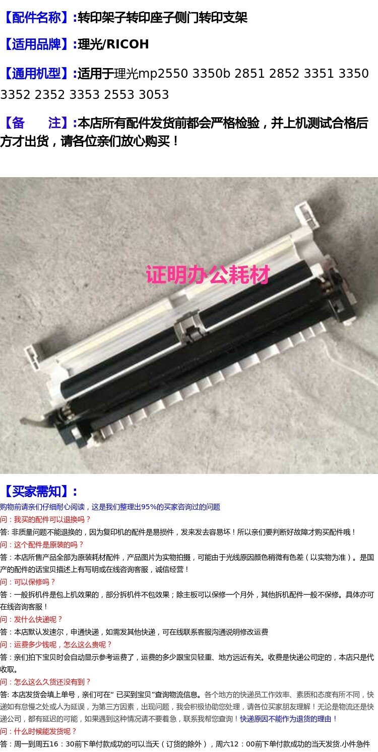 Ricoh 2553 2550 3350 3351 2852 3352 3353 Transfer Stand Stick Transfer Bracket Assembly