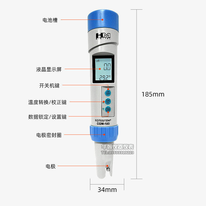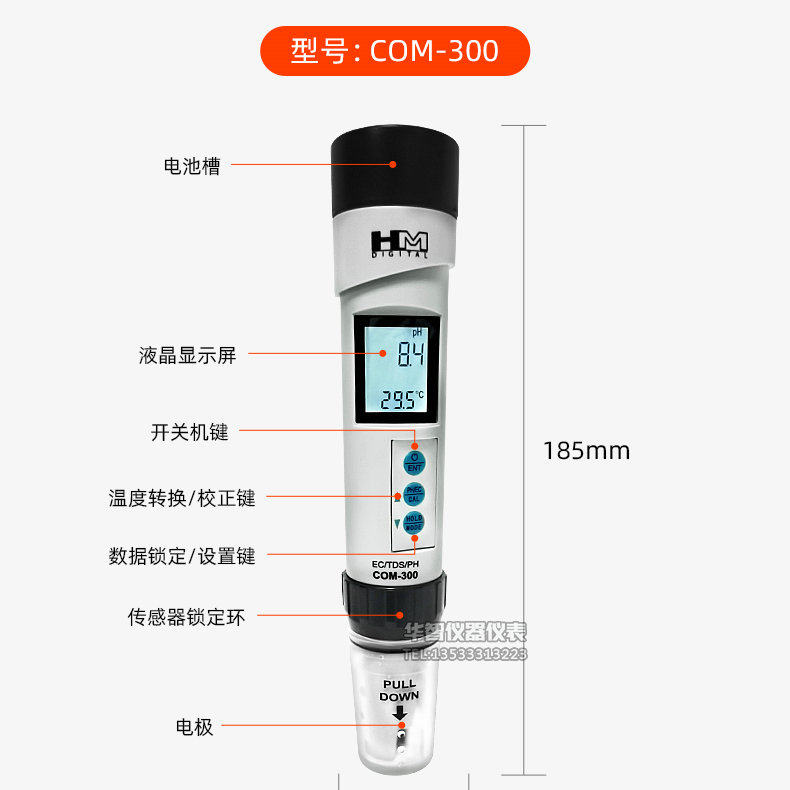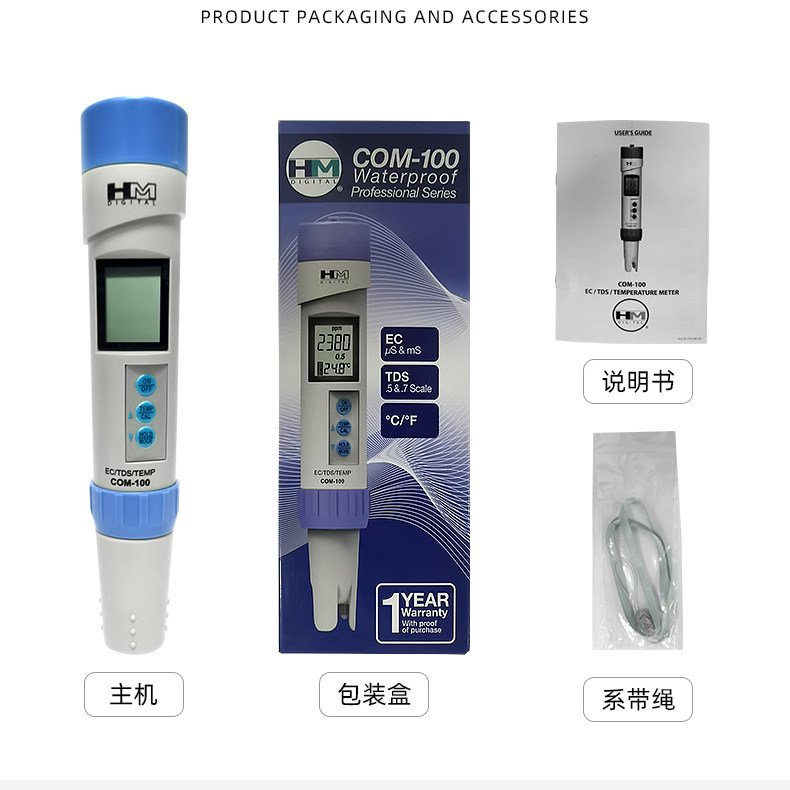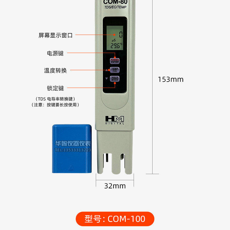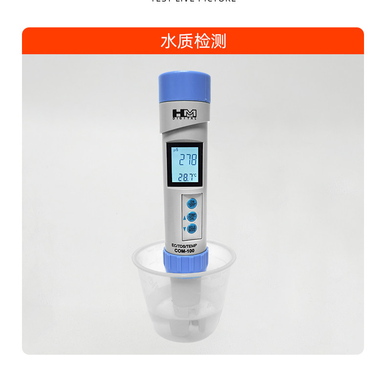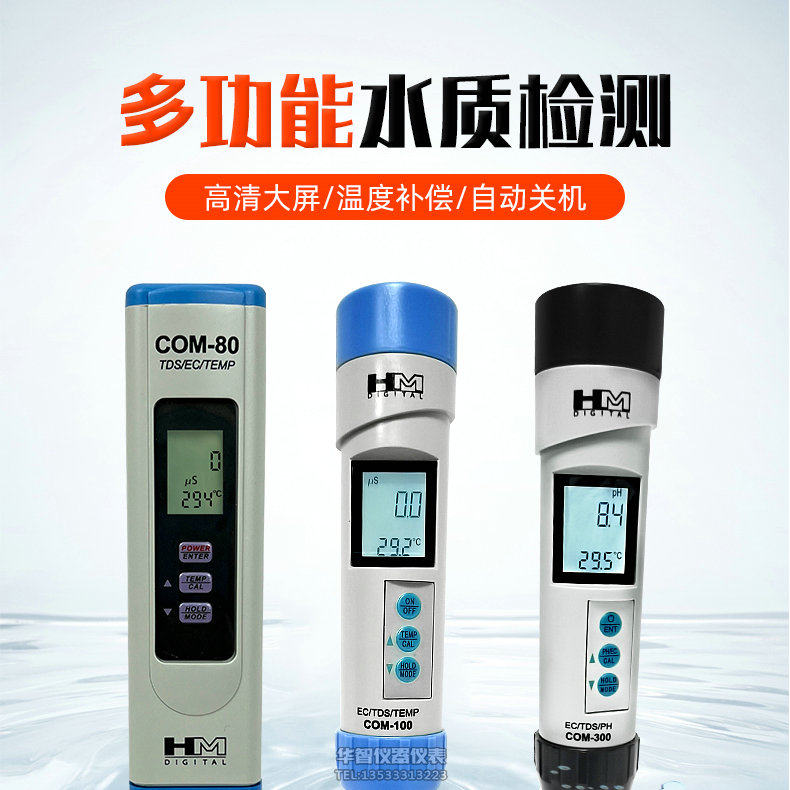 Korean Hm Water Quality Testing Pen Com100/80/300 Conductivity Meter Ec/Tds/Ph Value Temperature Detector